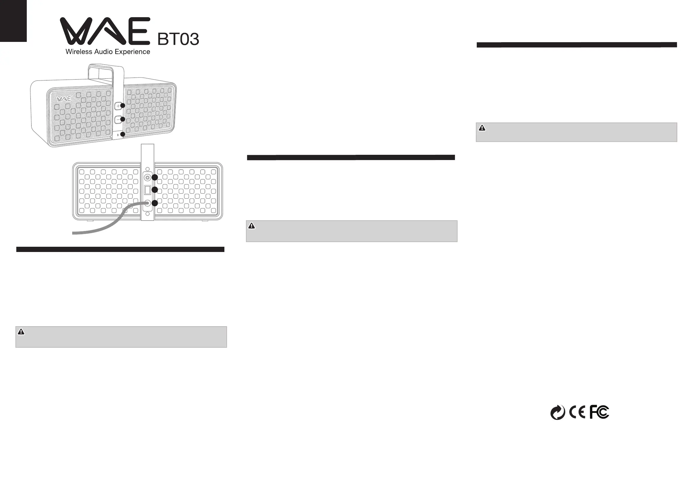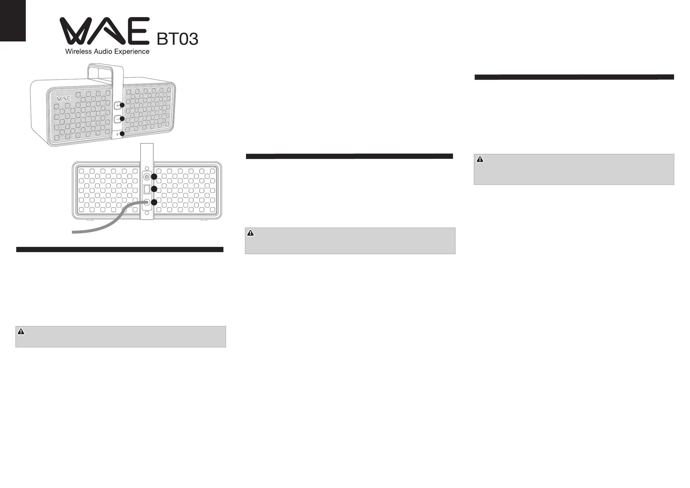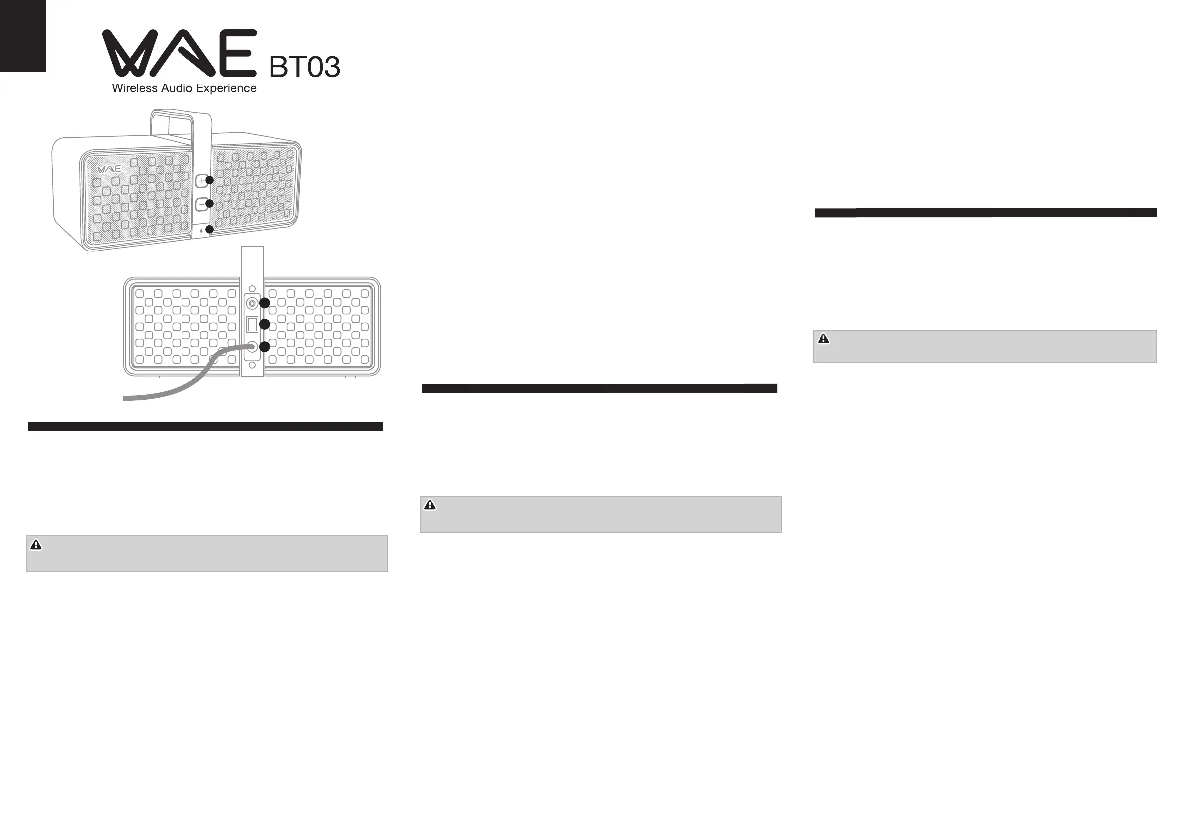 - If you are using your WAE-BT03 speaker for the rst time, the device remains ready for pairing for 2 minutes. After that, you