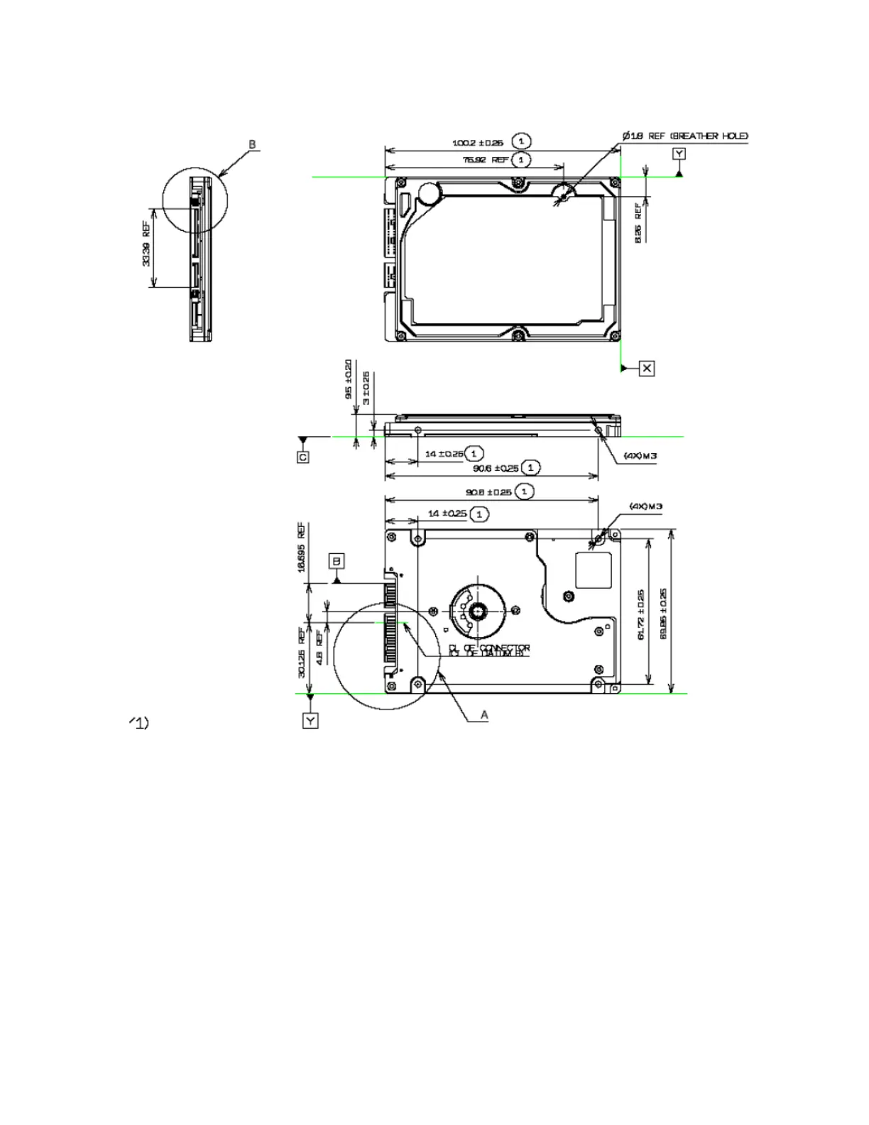 The mounting hole locations and size of the drive are shown in the following illustration: