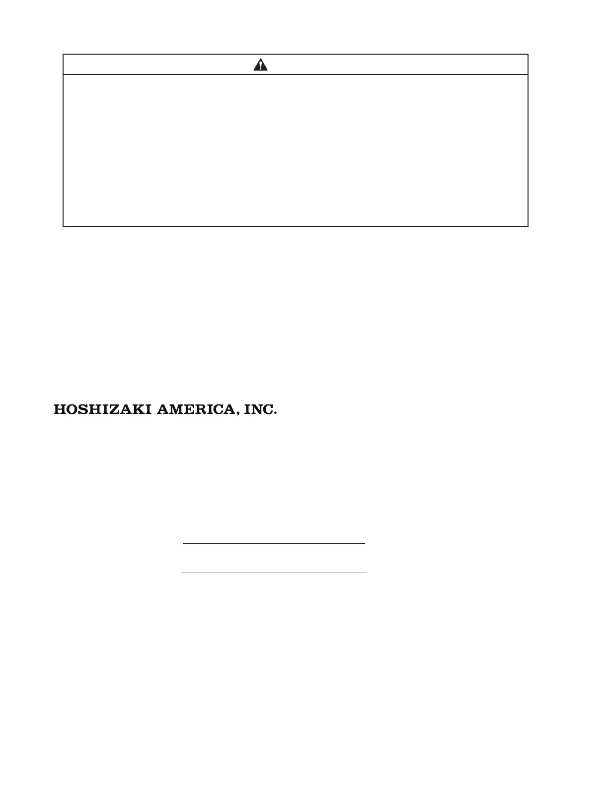 obtain the name and phone number of your local Hoshizaki Certied Service