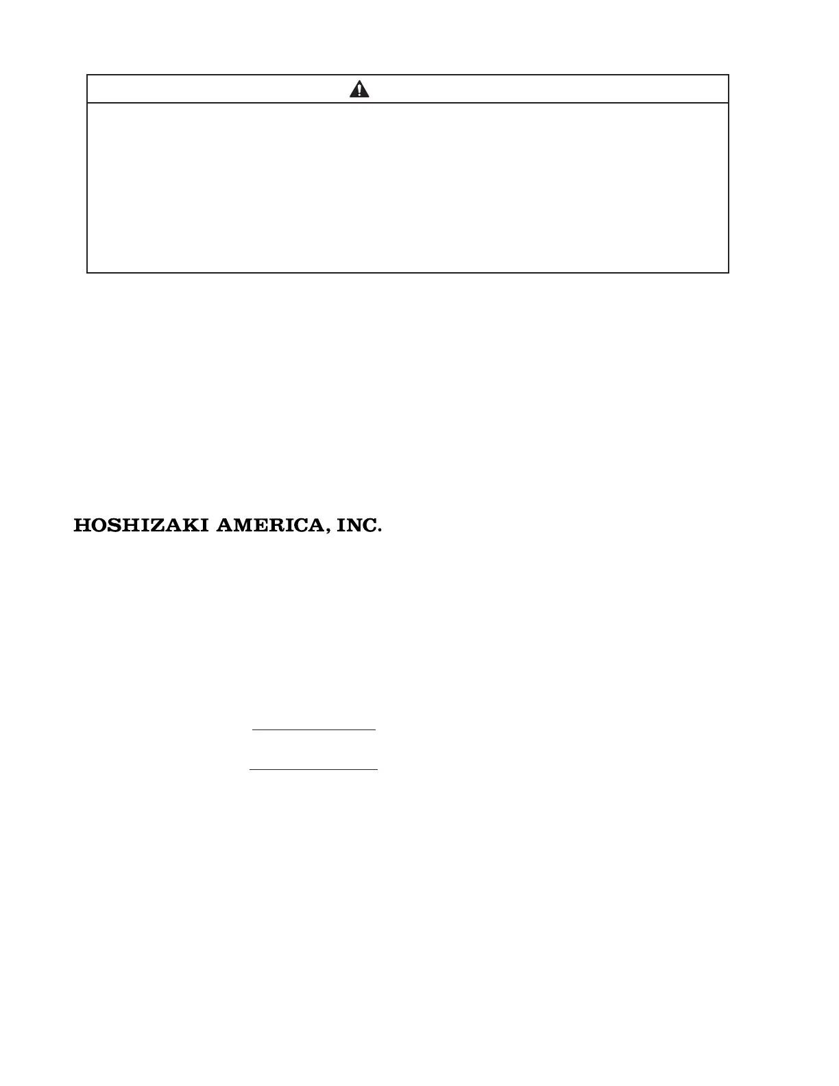 obtain the name and phone number of your local Hoshizaki Certied Service