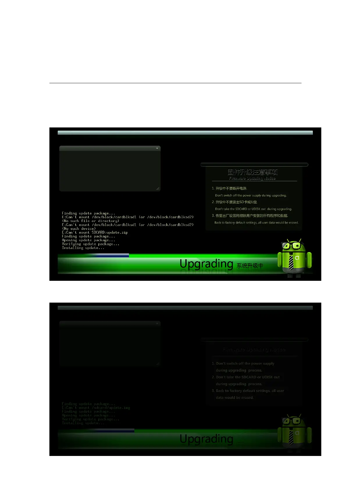 1.Copy two files (update.zip and update.img) to the root folder of USB Memory Stick.