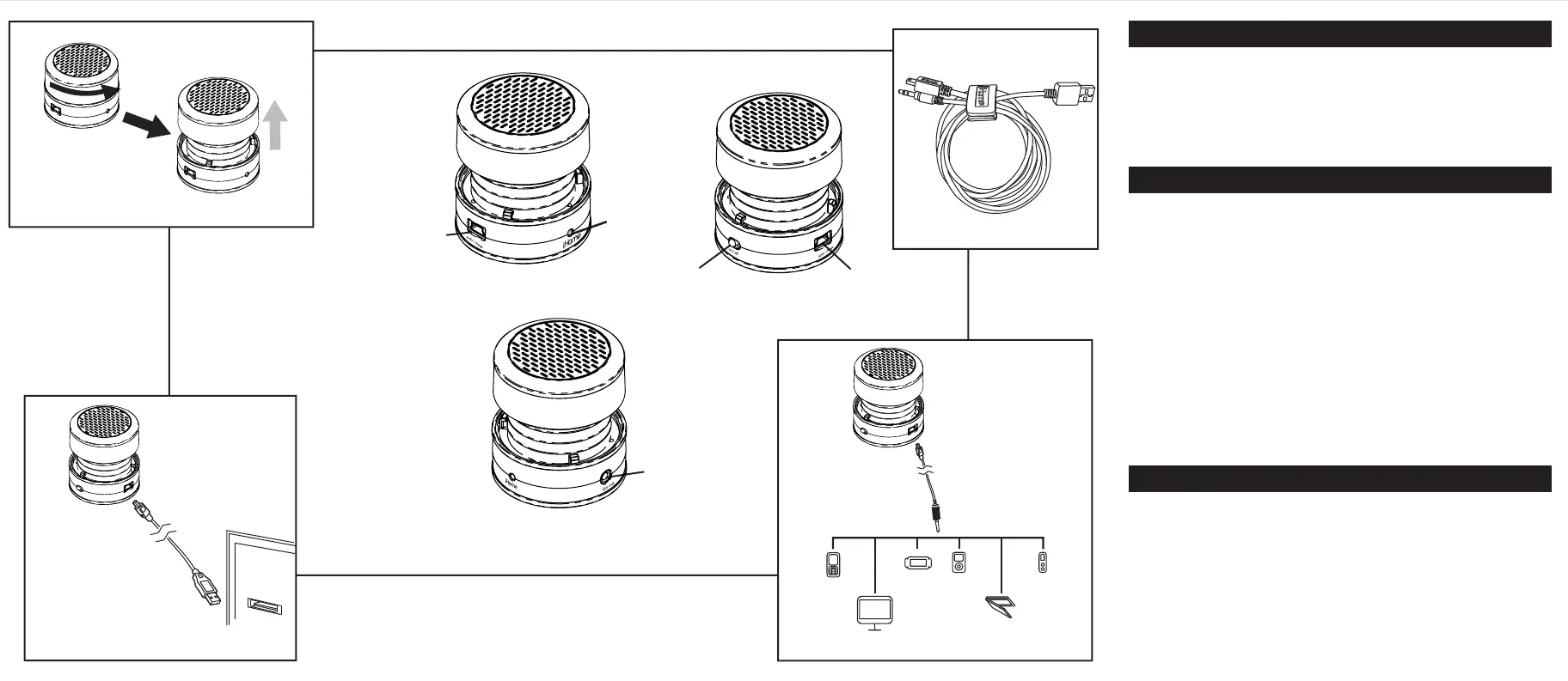 To unlock and expand the speaker, grip the top and bottom