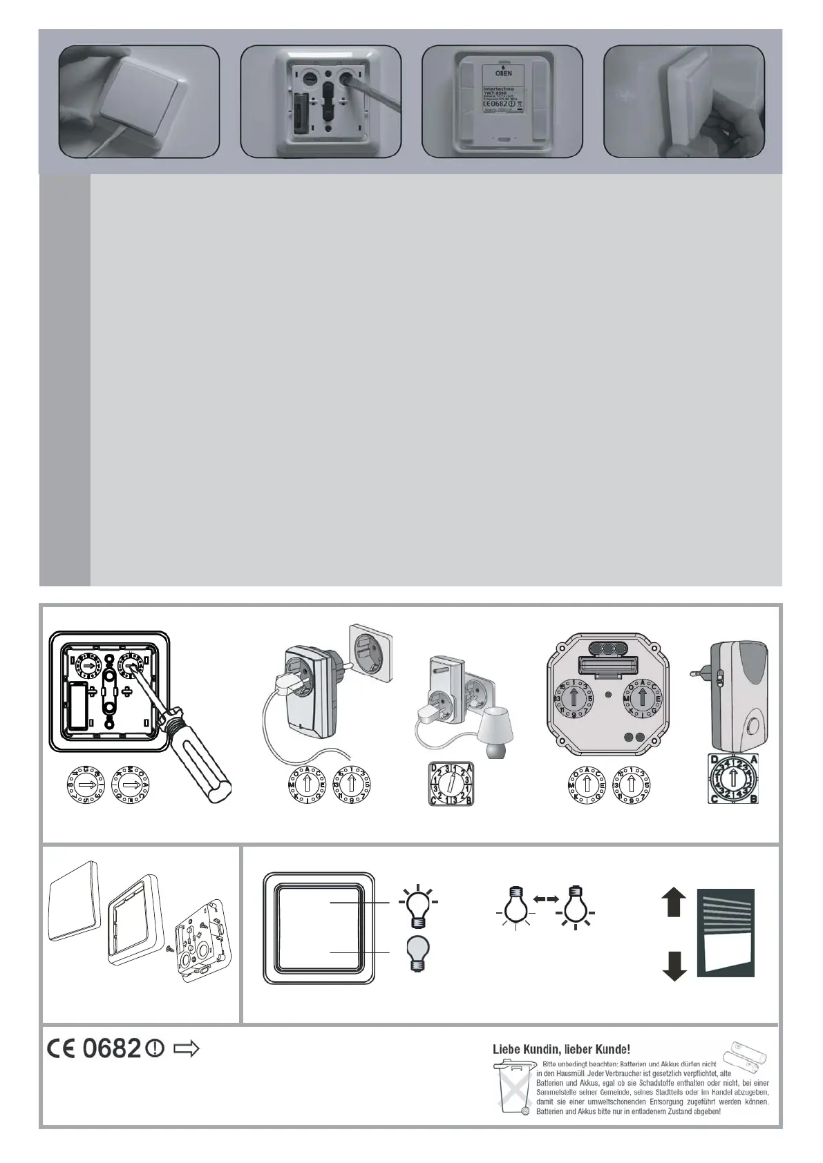 Stellen Sie den gleichen Buchstaben und die gleiche Zahl wie am Empfänger ein. Alle intertechno Typen „verstehen“ sich untereinander.