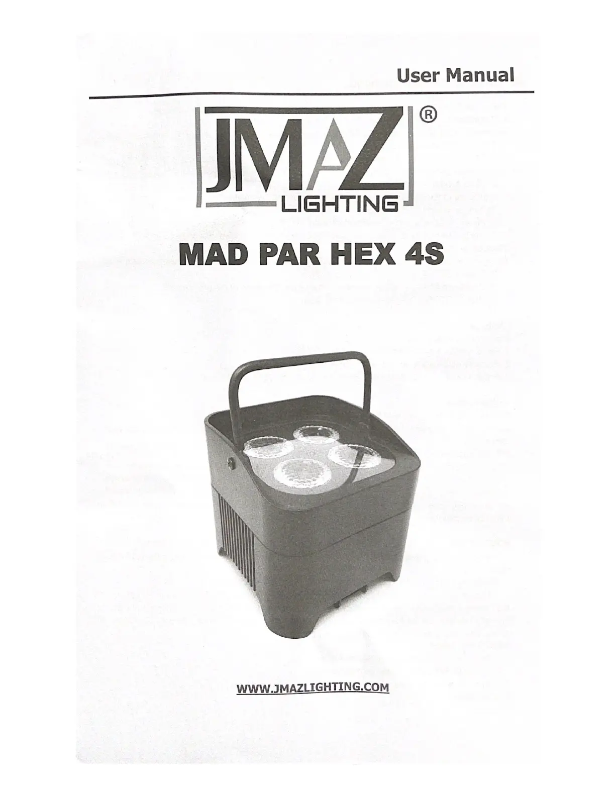 Olvassa el alább 📖 a magyar nyelvű használati útmutatót JMAZ Lighting MAD PAR HEX 4S (5 oldal) a nincs kategorizálva kategóriában. Ezt az útmutatót 14 ember találta hasznosnak és 7.5 felhasználó értékelte átlagosan 4.8 csillagra