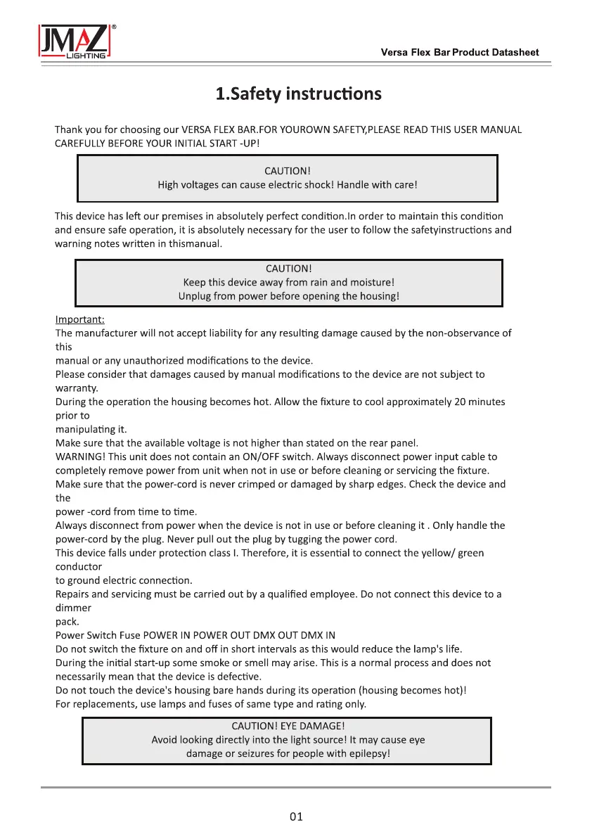 Használati útmutató JMAZ Lighting Versa Flex Bar