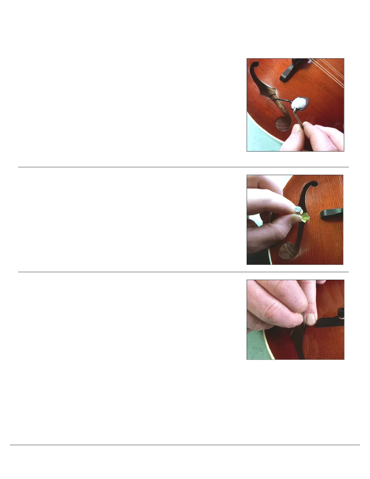 Maneuver the bass side pickup over to the bass side F-hole, and fish it out with tweezers or needle-nose