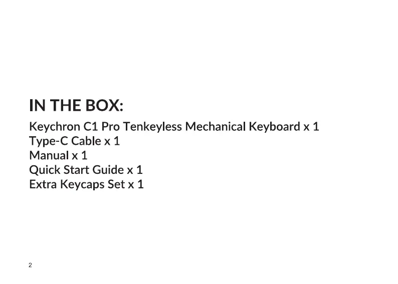 Olvassa el alább 📖 a magyar nyelvű használati útmutatót Keychron C1 Pro (32 oldal) a billentyűzet kategóriában. Ezt az útmutatót 12 ember találta hasznosnak és 6.5 felhasználó értékelte átlagosan 4.3 csillagra