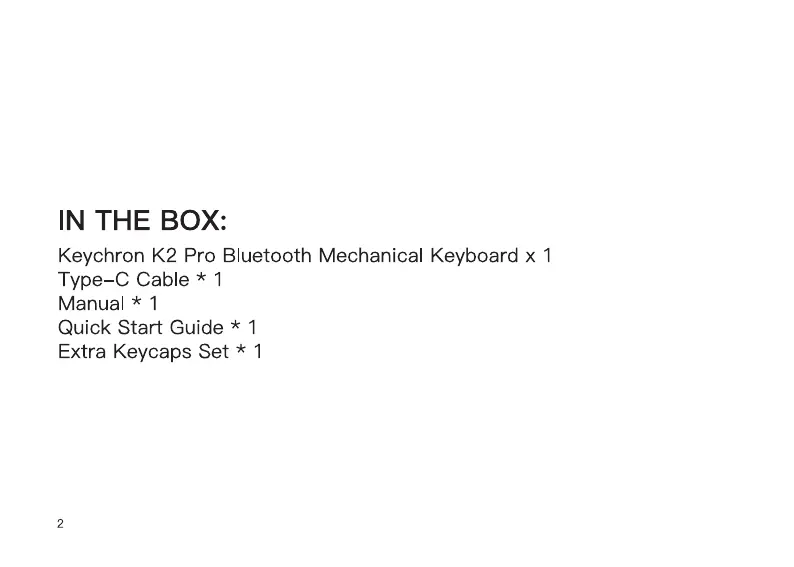 Olvassa el alább 📖 a magyar nyelvű használati útmutatót Keychron K2 Pro (40 oldal) a billentyűzet kategóriában. Ezt az útmutatót 10 ember találta hasznosnak és 5.5 felhasználó értékelte átlagosan 4.4 csillagra