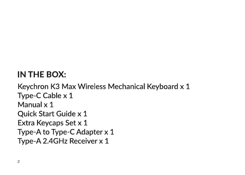 Olvassa el alább 📖 a magyar nyelvű használati útmutatót Keychron K3 Max (42 oldal) a billentyűzet kategóriában. Ezt az útmutatót 13 ember találta hasznosnak és 7 felhasználó értékelte átlagosan 4.5 csillagra