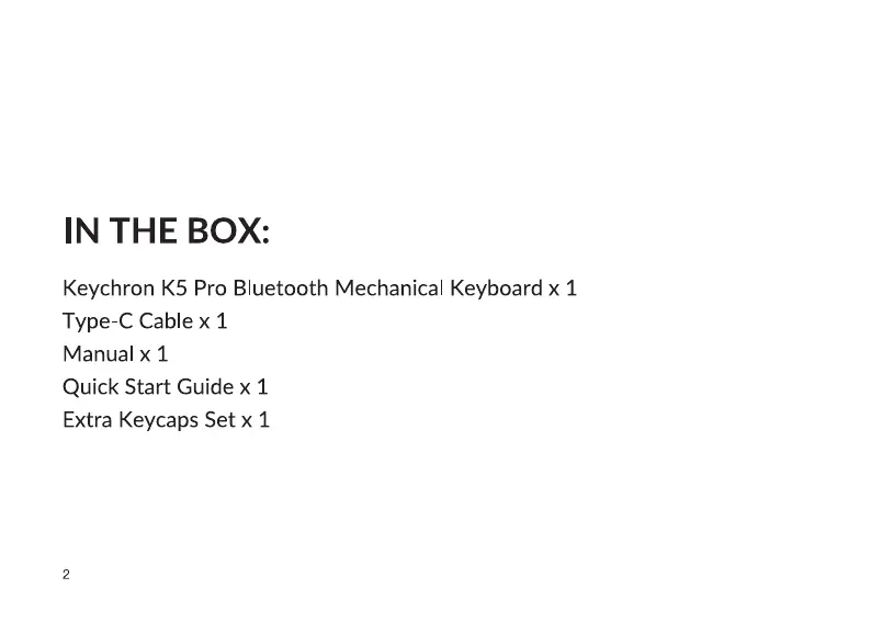 Olvassa el alább 📖 a magyar nyelvű használati útmutatót Keychron K5 Pro (40 oldal) a billentyűzet kategóriában. Ezt az útmutatót 9 ember találta hasznosnak és 5 felhasználó értékelte átlagosan 4.0 csillagra