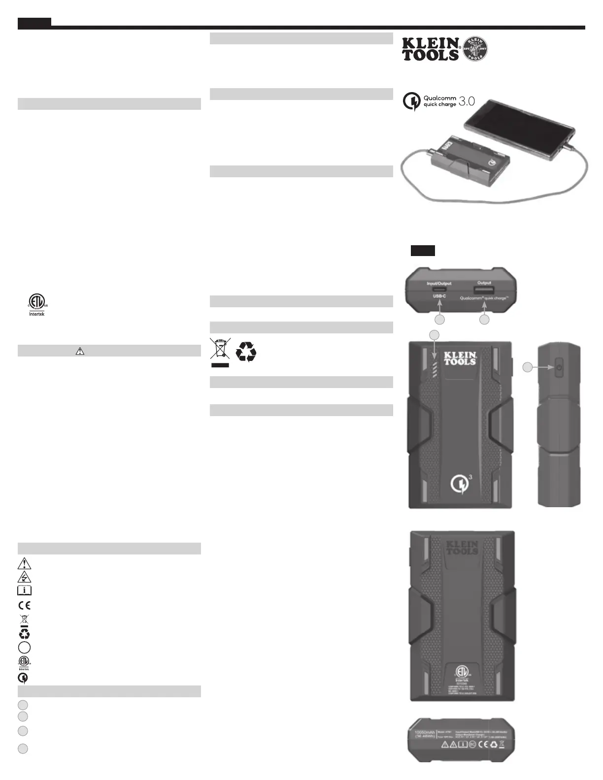 Olvassa el alább 📖 a magyar nyelvű használati útmutatót Klein Tools KTB1 (6 oldal) a power bank kategóriában. Ezt az útmutatót 16 ember találta hasznosnak és 8.5 felhasználó értékelte átlagosan 4.6 csillagra