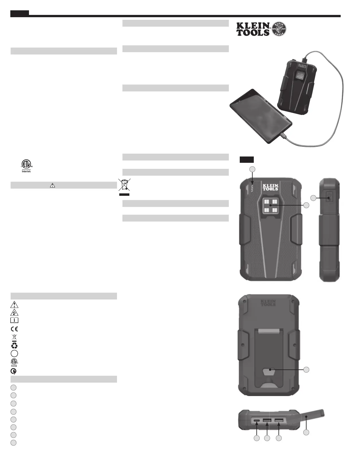 Olvassa el alább 📖 a magyar nyelvű használati útmutatót Klein Tools KTB2 (6 oldal) a power bank kategóriában. Ezt az útmutatót 12 ember találta hasznosnak és 6.5 felhasználó értékelte átlagosan 5.0 csillagra