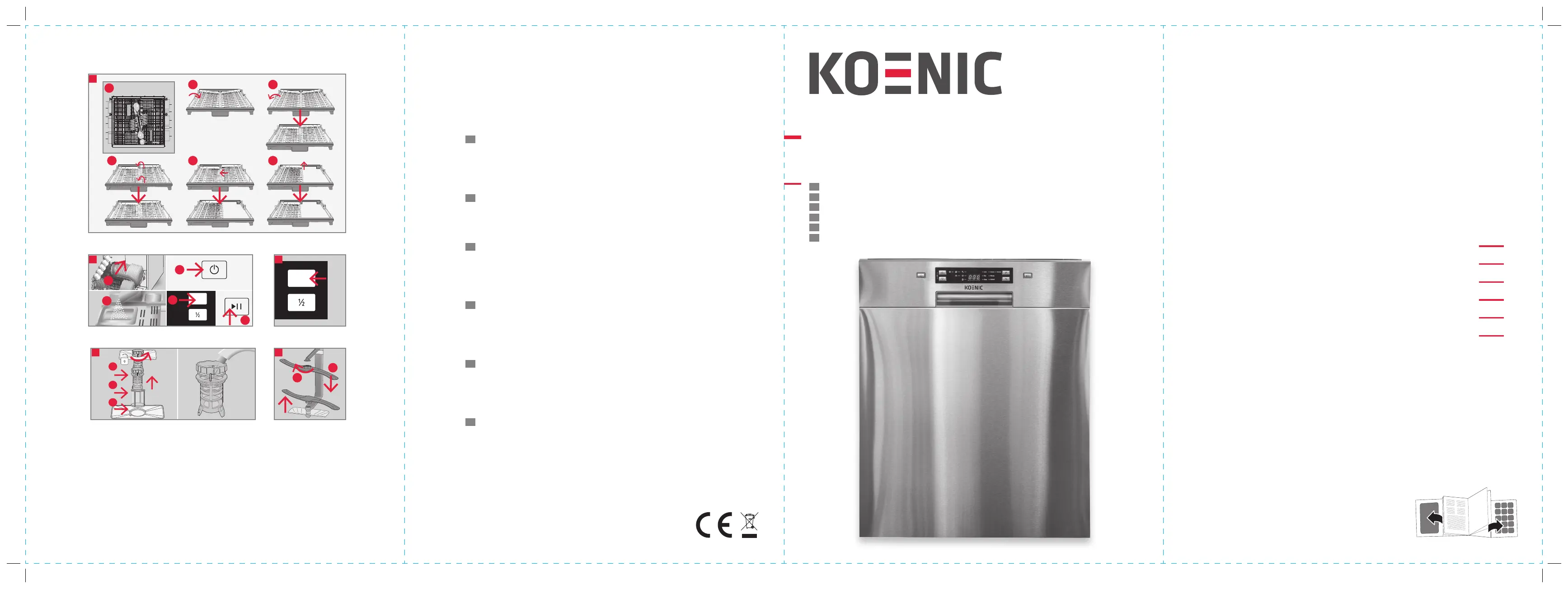 Olvassa el alább 📖 a magyar nyelvű használati útmutatót Koenic KDW 6031-1 E BU (98 oldal) a mosogatógép kategóriában. Ezt az útmutatót 13 ember találta hasznosnak és 7 felhasználó értékelte átlagosan 4.5 csillagra