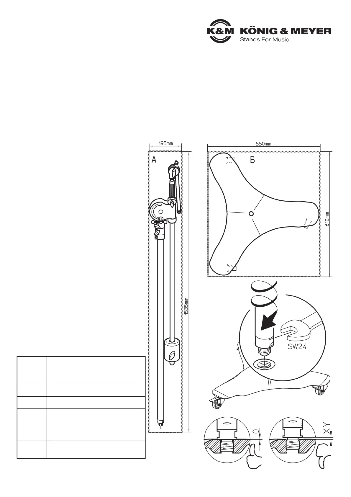 Stativ: 195 x 120 x 1535 mm - 7,5 kg