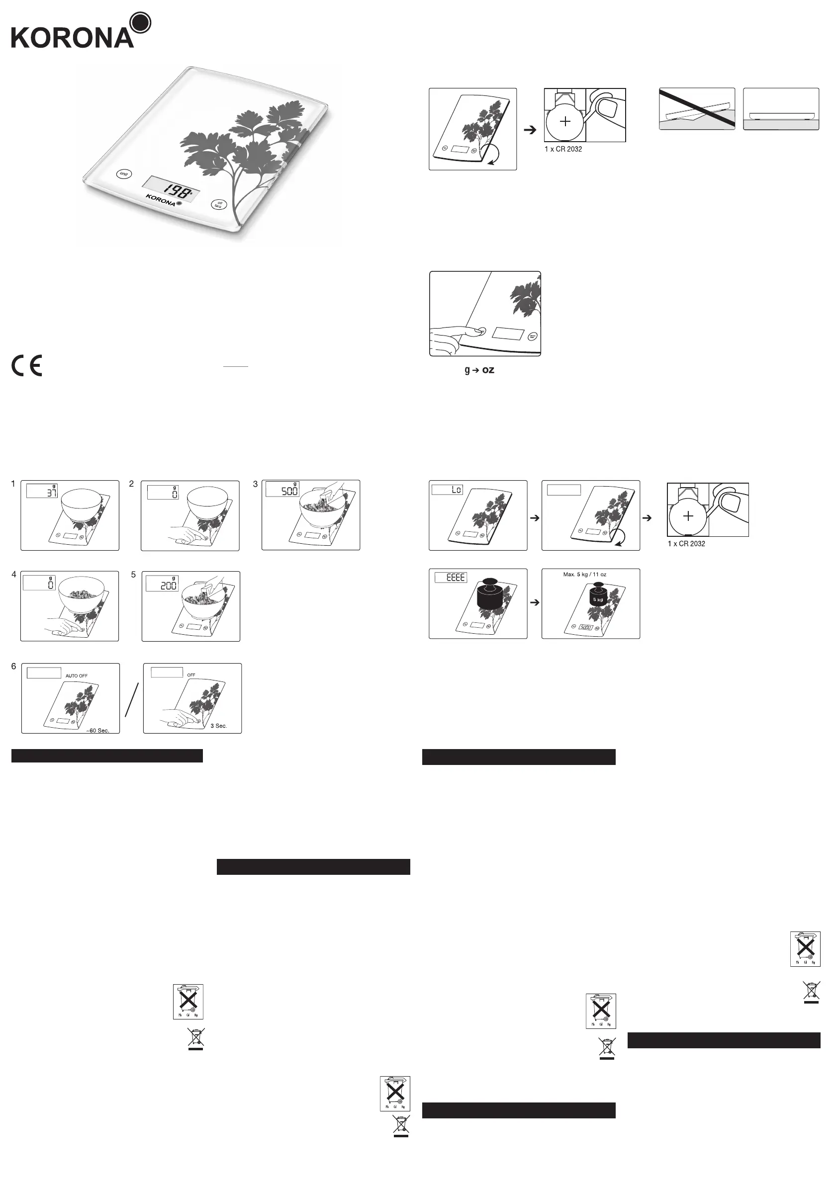 • Die Belastbarkeit der Waage beträgt max. 5 kg. Bei