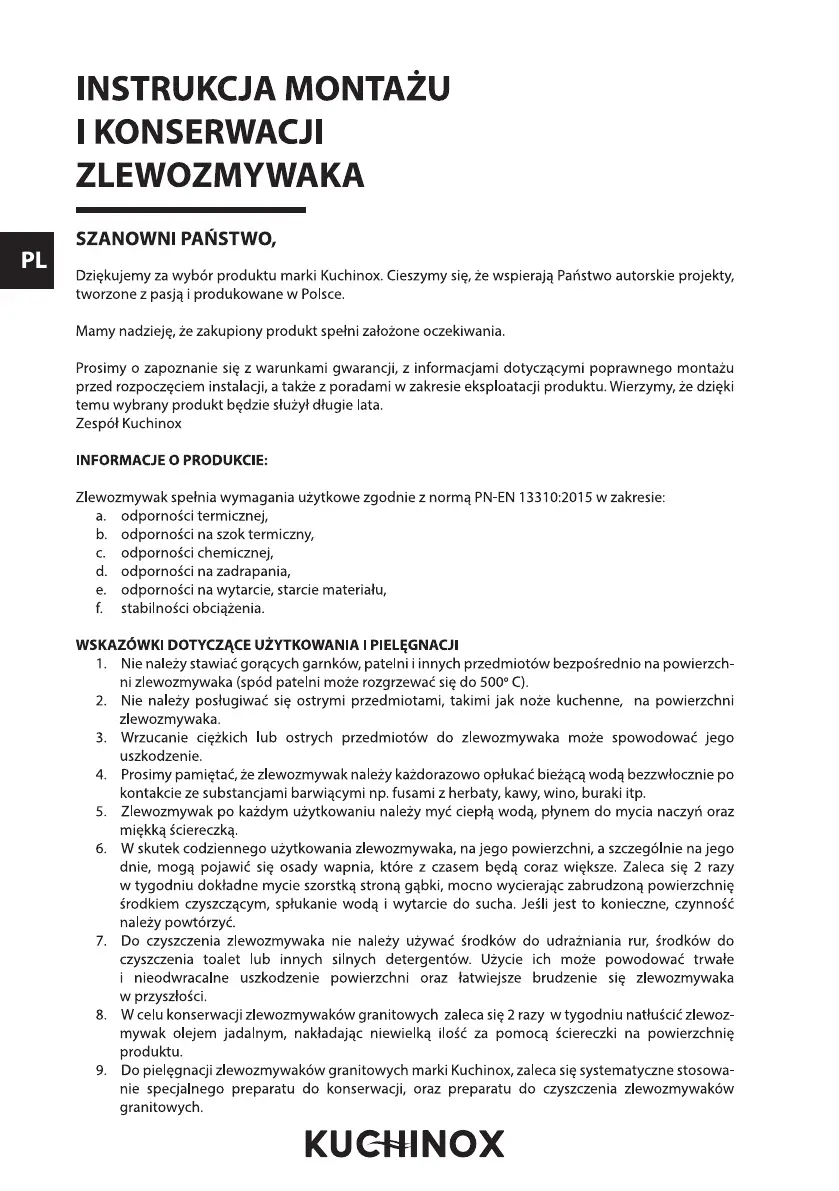 Útmutatók Mosogató Kuchinox
