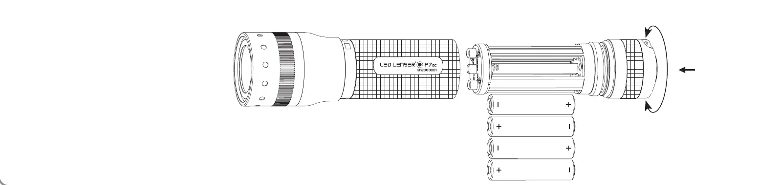 To replace the batteries switch o the flashlight, then unscrew