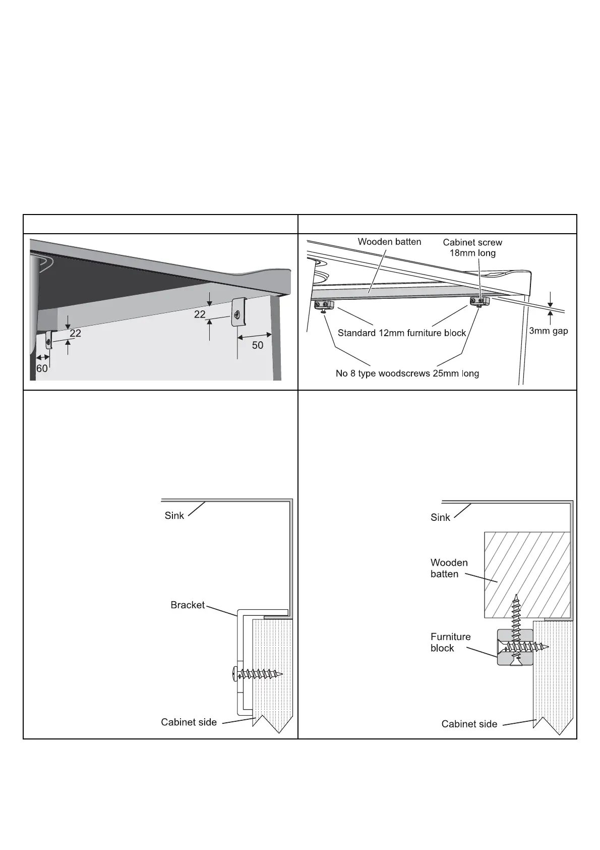 Use either of the two methods of installation. Wooden battens are supplied with some models. The installer must supply
