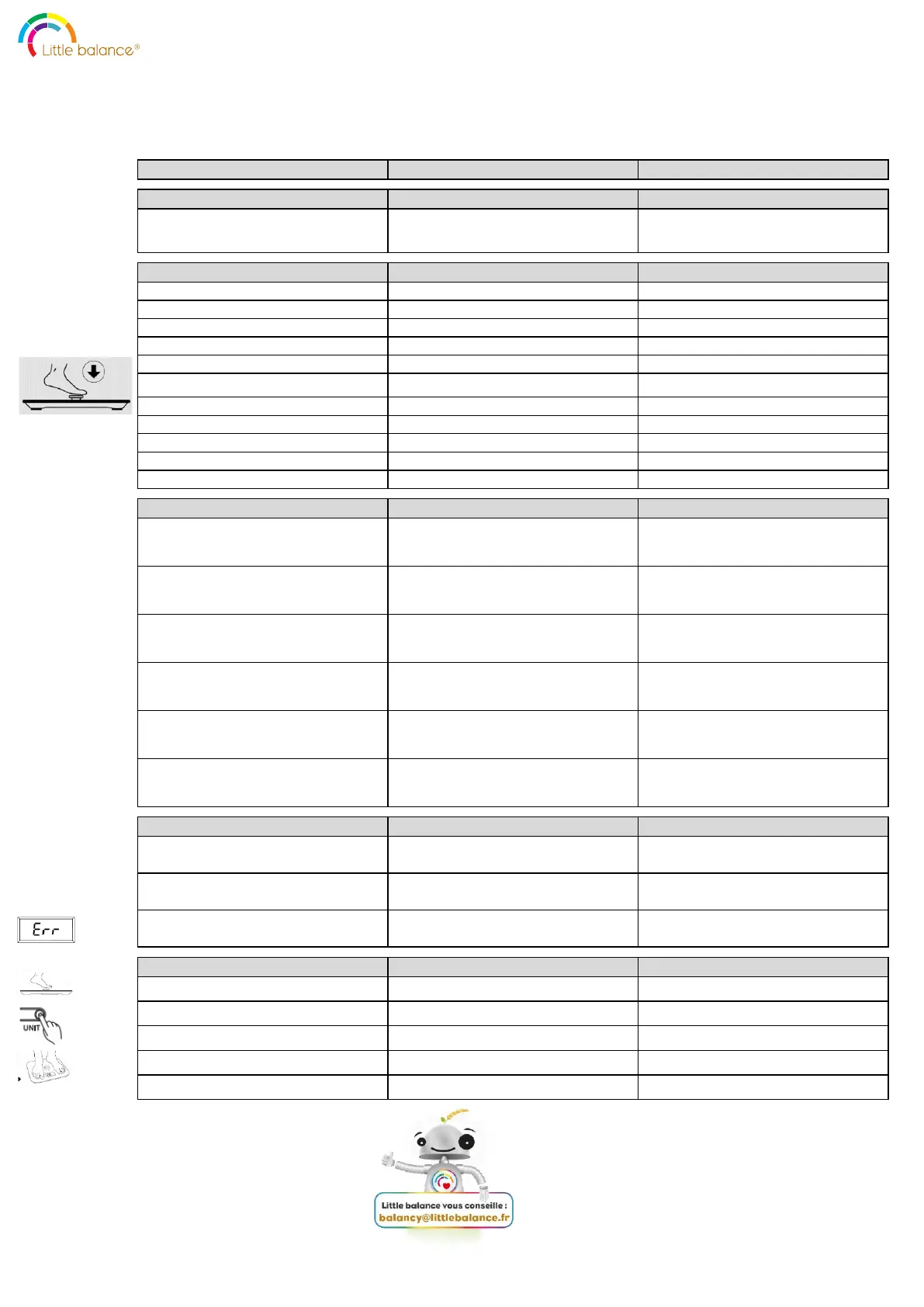 3. L’écran affiche le message "Err" en cas de surcharge3. ”Err”showed on LCD indicates overload3. En caso de sobrecarga, verá en pantalla la indicación “Err”