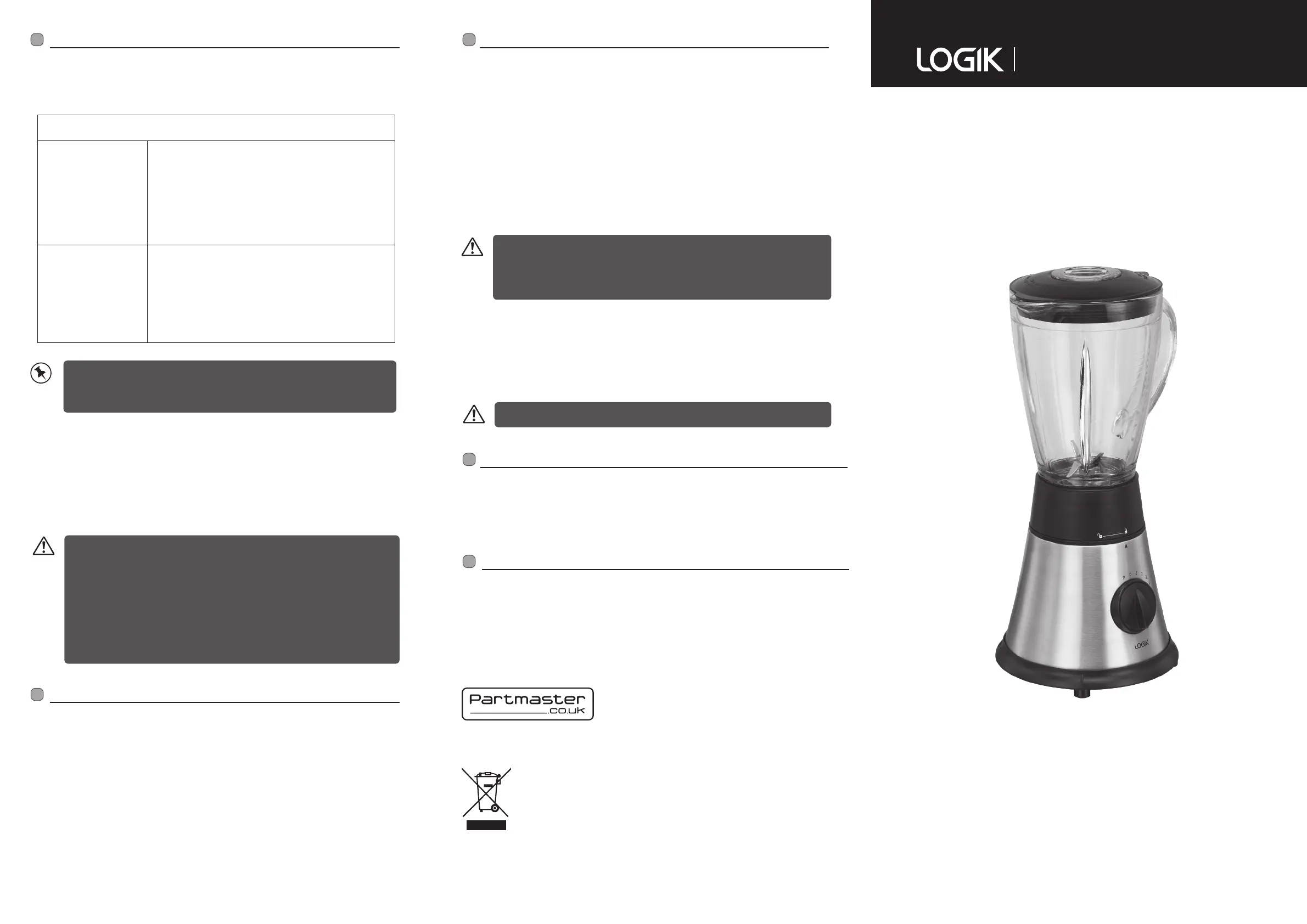 Olvassa el alább 📖 a magyar nyelvű használati útmutatót Logik L15BSS13 (2 oldal) a Keverőgép kategóriában. Ezt az útmutatót 20 ember találta hasznosnak és 10.5 felhasználó értékelte átlagosan 3.6 csillagra