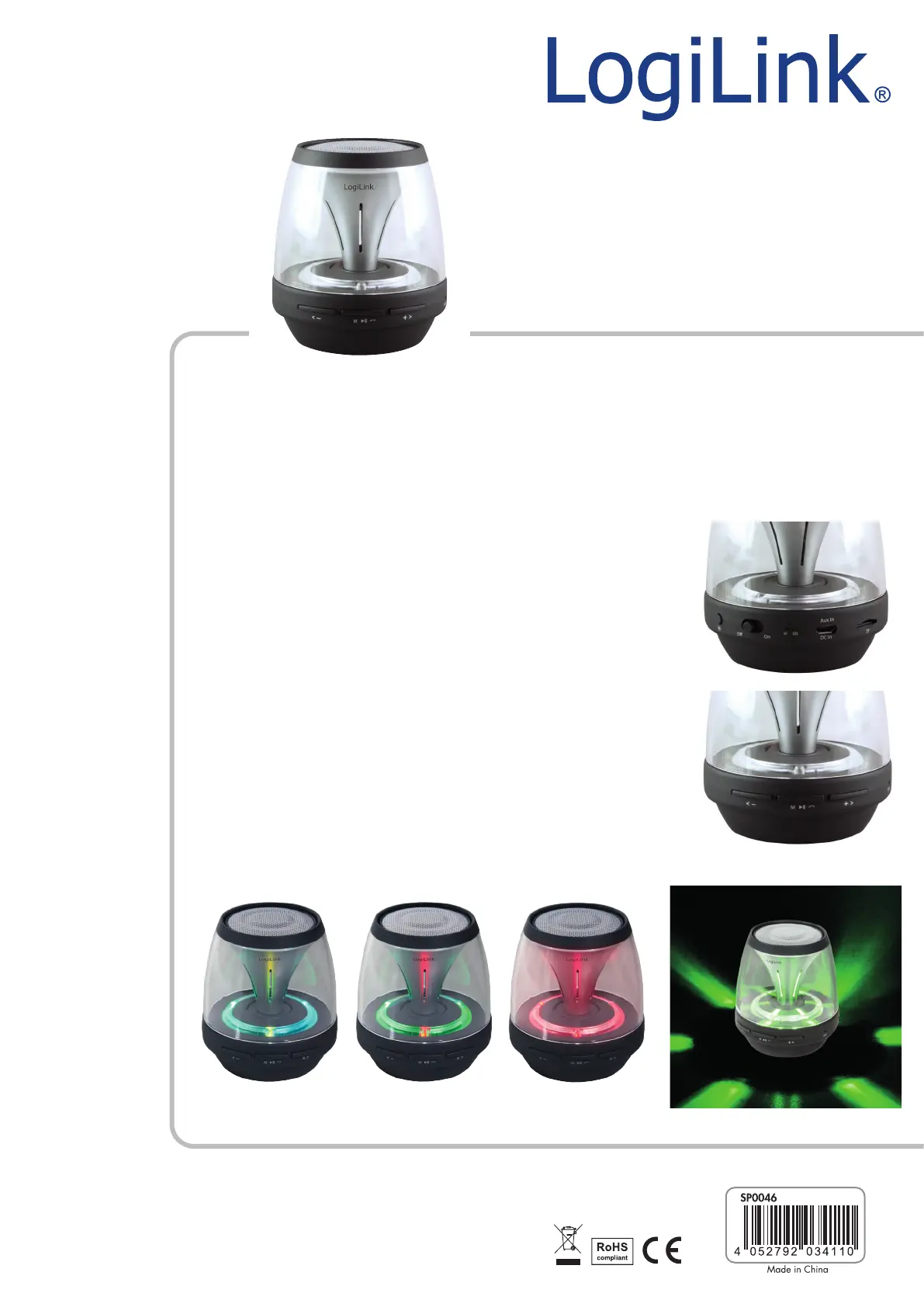 Olvassa el alább 📖 a magyar nyelvű használati útmutatót LogiLink DiscoLady-2go (2 oldal) a hangszóró kategóriában. Ezt az útmutatót 19 ember találta hasznosnak és 6 felhasználó értékelte átlagosan 4.5 csillagra