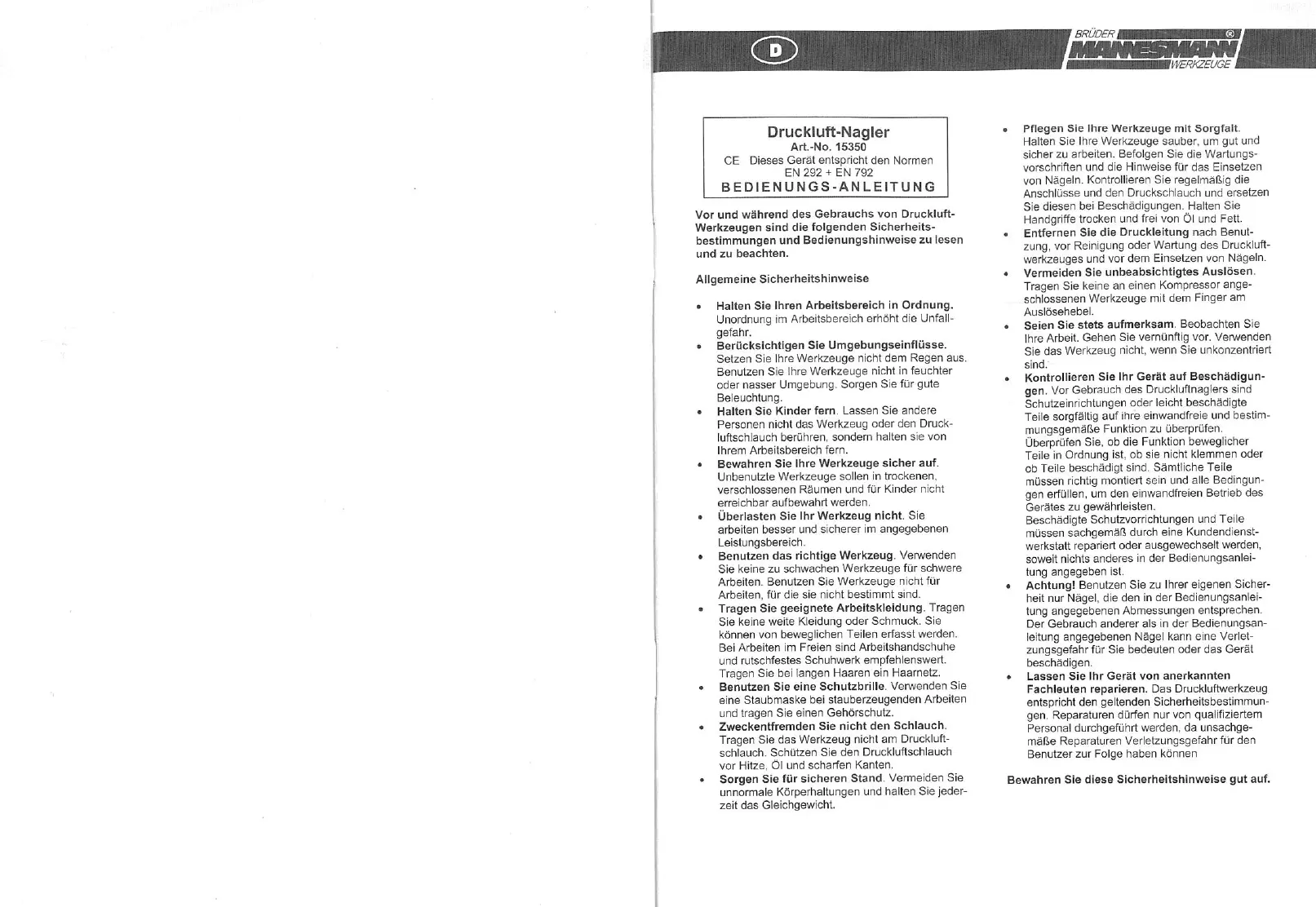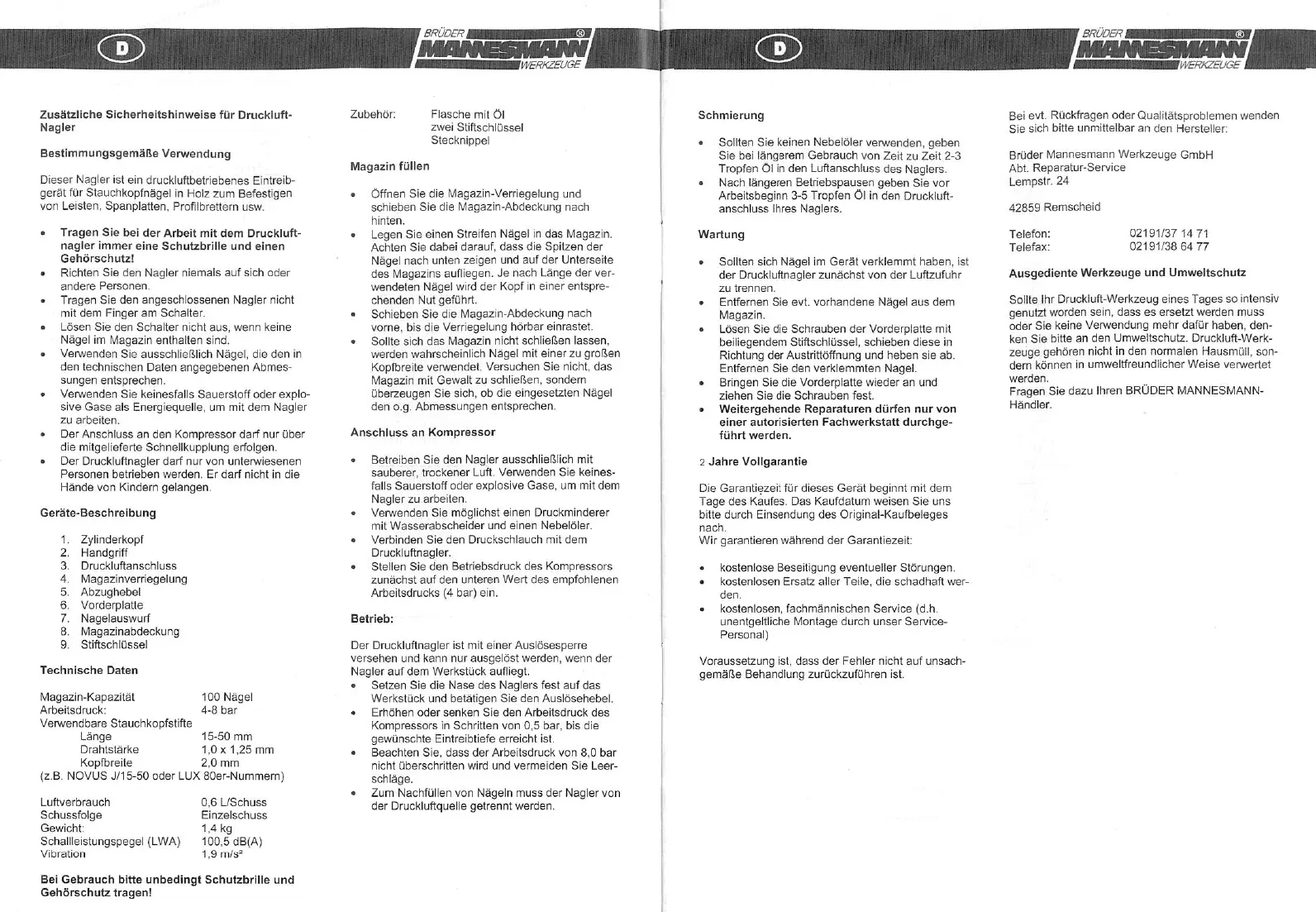 Olvassa el alább 📖 a magyar nyelvű használati útmutatót Mannesmann M15350 (10 oldal) a tűzőgép kategóriában. Ezt az útmutatót 13 ember találta hasznosnak és 7 felhasználó értékelte átlagosan 5.0 csillagra