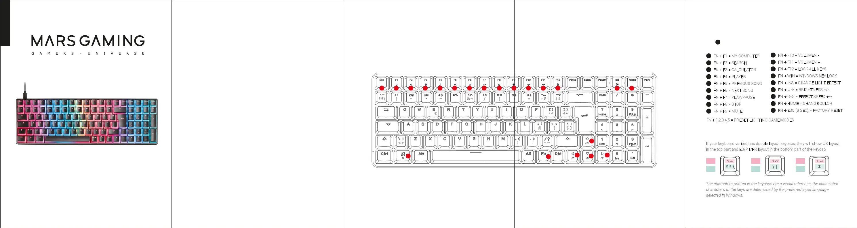 FN + 1,2,3,4,5 = PRESET LIGHTING GAME MODES