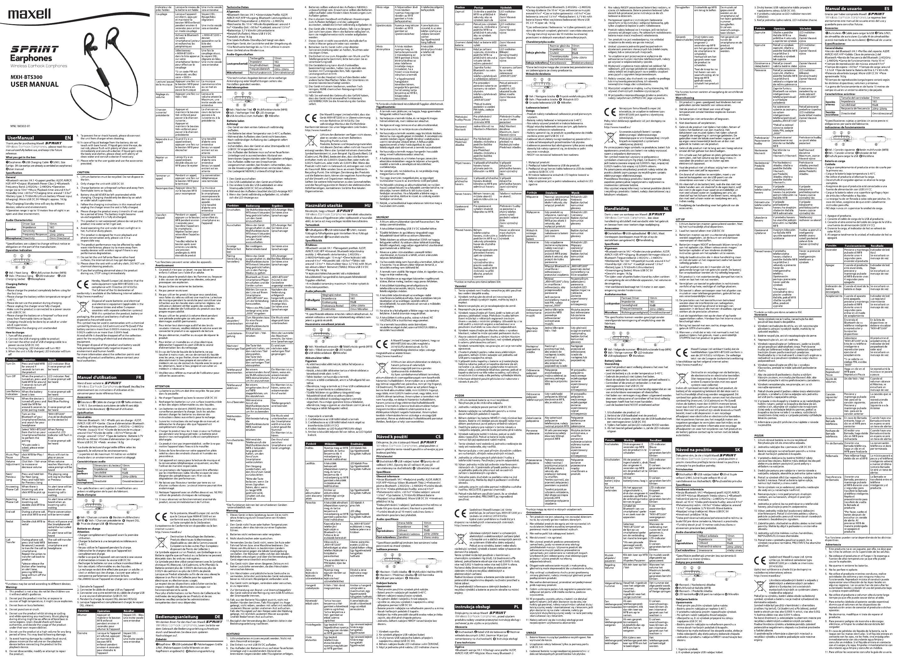 Olvassa el alább 📖 a magyar nyelvű használati útmutatót Maxell Sprint MXH-BTS300 (2 oldal) a fejhallgató kategóriában. Ezt az útmutatót 13 ember találta hasznosnak és 7 felhasználó értékelte átlagosan 4.4 csillagra