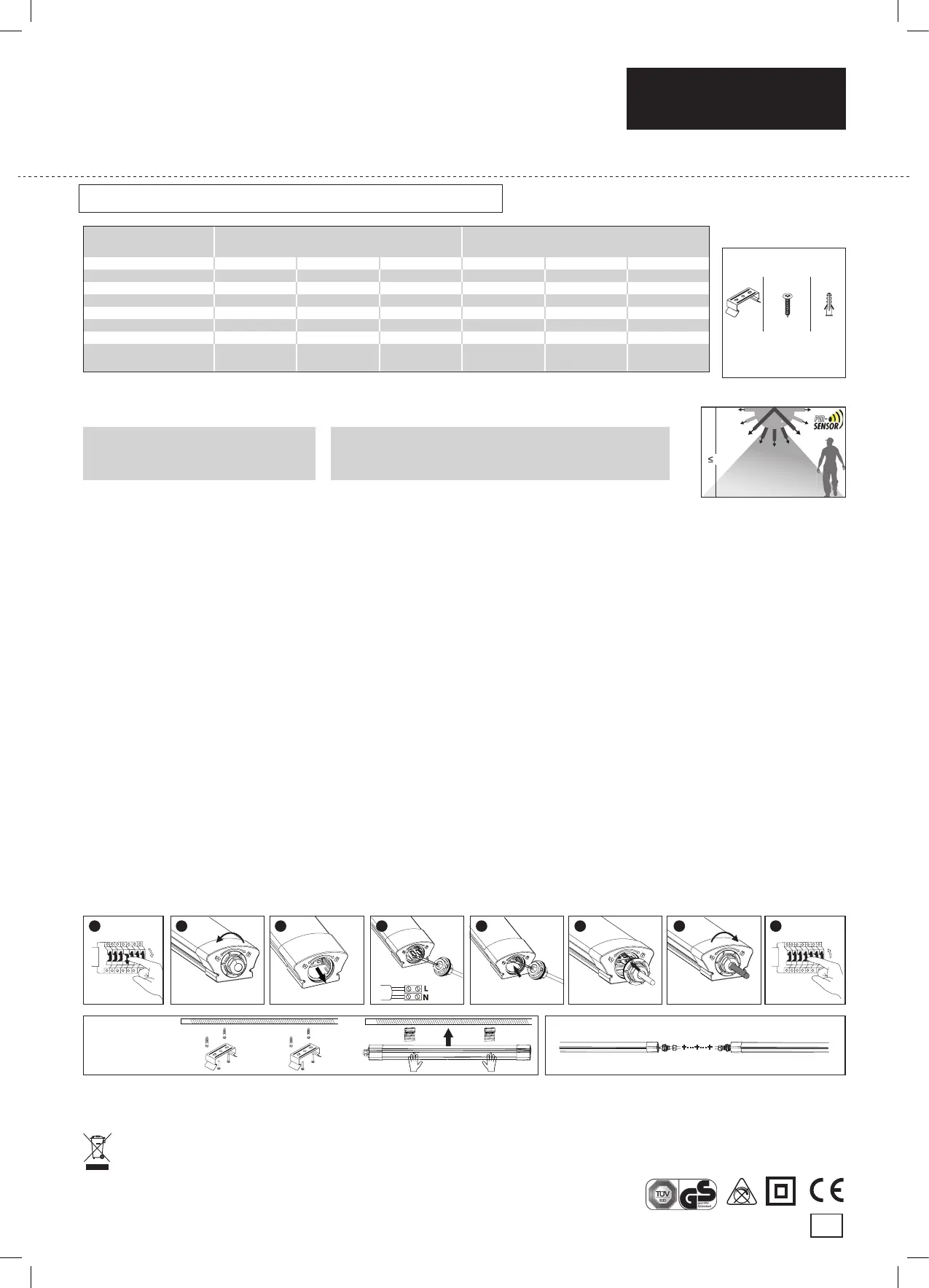 • Vermeiden Sie, die Feuchtraumleuchte gegenüber sehr hellen Lichtquellen zu montieren, um Fehlfunktionen zu vermeiden. Desweiteren kann es zu lästigen Fehlschaltungen kom-