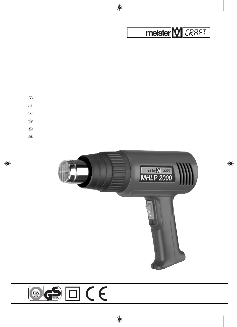 Olvassa el alább 📖 a magyar nyelvű használati útmutatót Meister Craft MHLP 2000 (56 oldal) a hőpisztoly kategóriában. Ezt az útmutatót 19 ember találta hasznosnak és 5 felhasználó értékelte átlagosan 4.9 csillagra