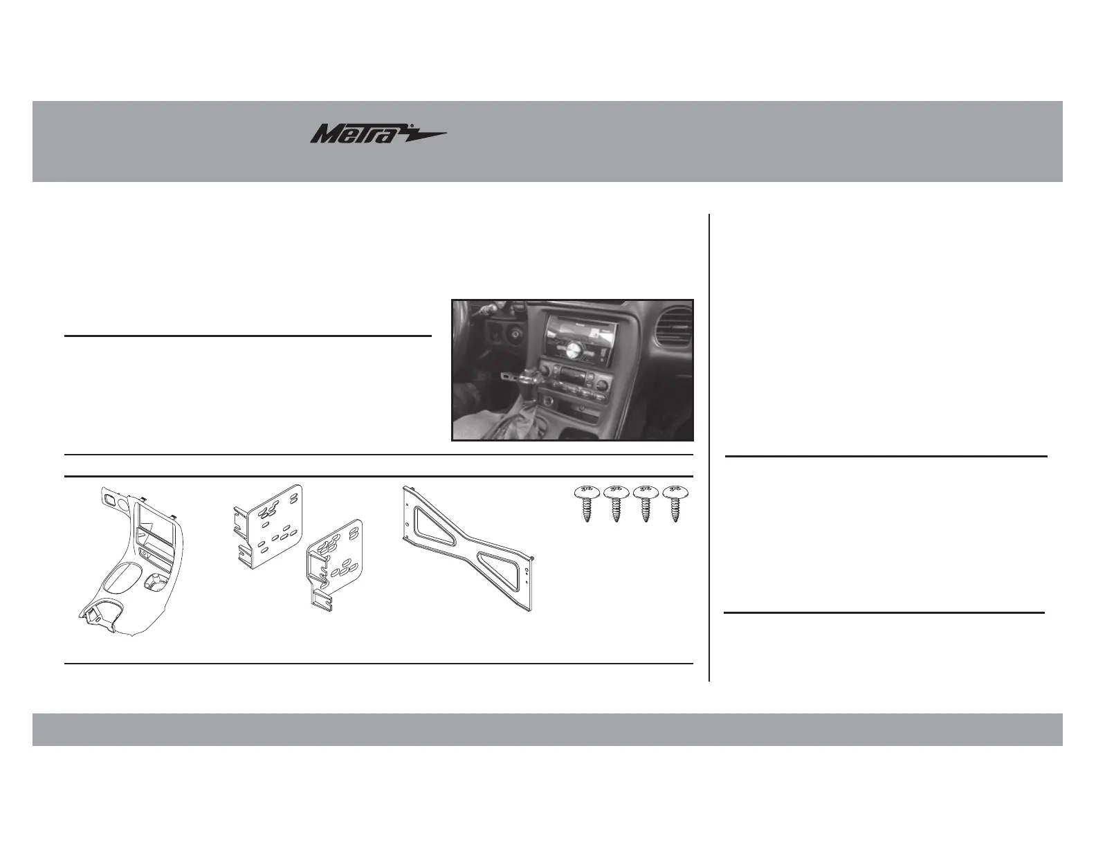 • A) Radio dash panel • B) Radio brackets • C) Drill template • D) (4) #8 x 1/2” Phillips truss-head screws