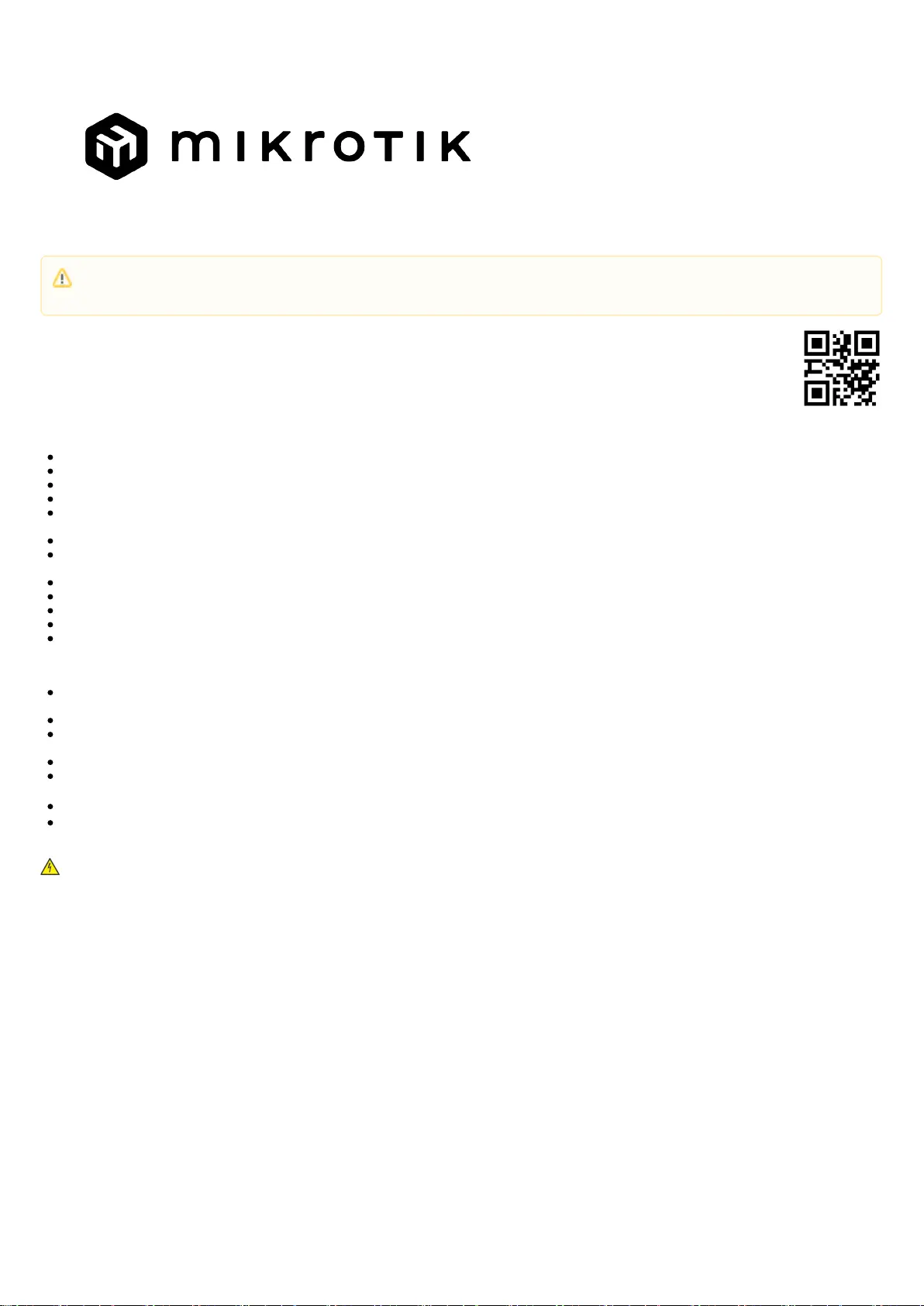 Before you work on any MikroTik equipment, be aware of the hazards involved with electrical circuitry and be familiar with standard practices for preventing