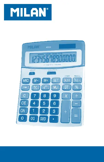 Olvassa el alább 📖 a magyar nyelvű használati útmutatót Milan 40924 (124 oldal) a számológép kategóriában. Ezt az útmutatót 12 ember találta hasznosnak és 6.5 felhasználó értékelte átlagosan 4.8 csillagra