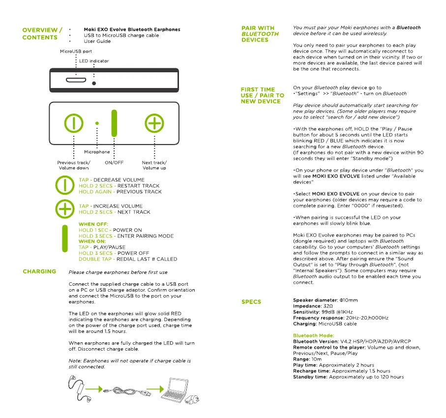 Olvassa el alább 📖 a magyar nyelvű használati útmutatót Moki EXO Evolve (2 oldal) a fejhallgató kategóriában. Ezt az útmutatót 17 ember találta hasznosnak és 9 felhasználó értékelte átlagosan 4.7 csillagra