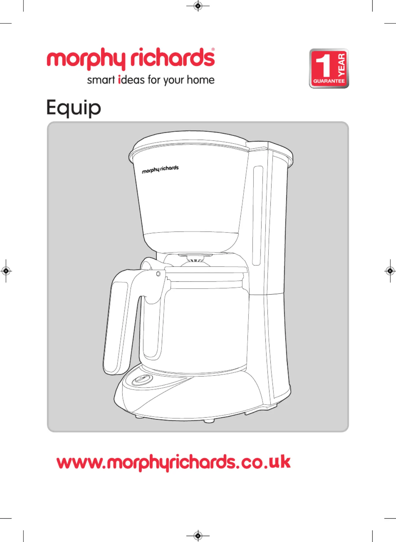 Olvassa el alább 📖 a magyar nyelvű használati útmutatót Morphy Richards Equip 162501 (6 oldal) a Kávéfőző kategóriában. Ezt az útmutatót 9 ember találta hasznosnak és 5 felhasználó értékelte átlagosan 4.7 csillagra