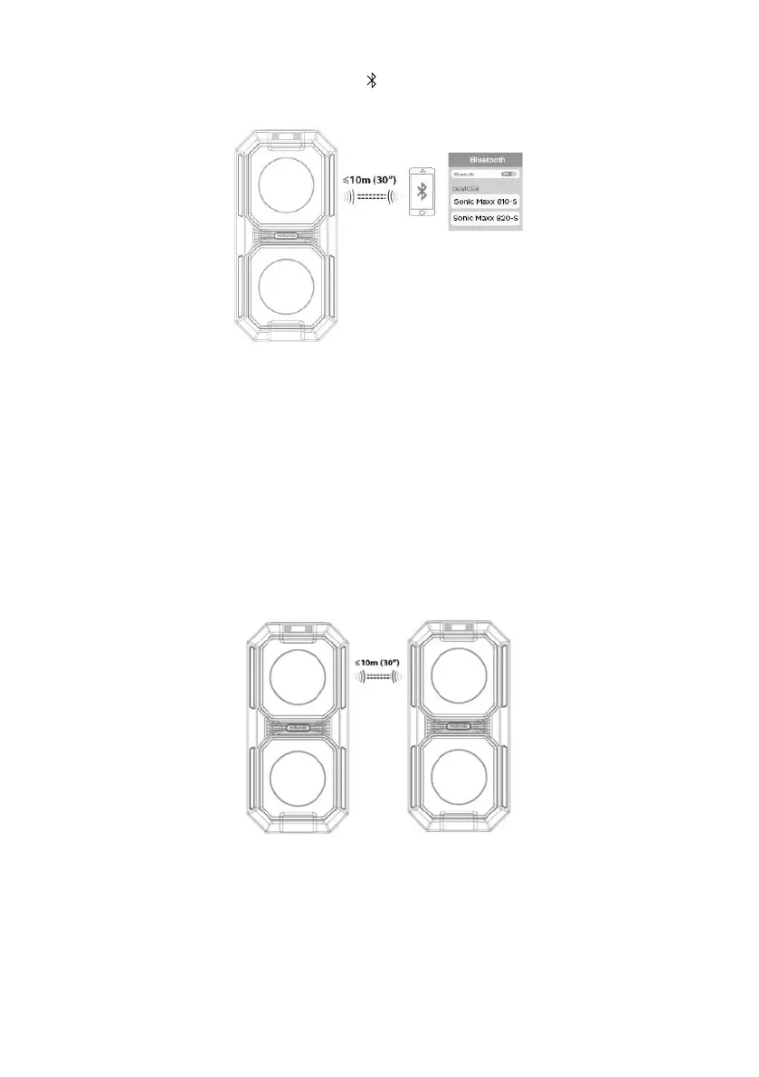 • The operational range between this speaker and a Bluetooth device is approximately 10 meters (30 feet).
