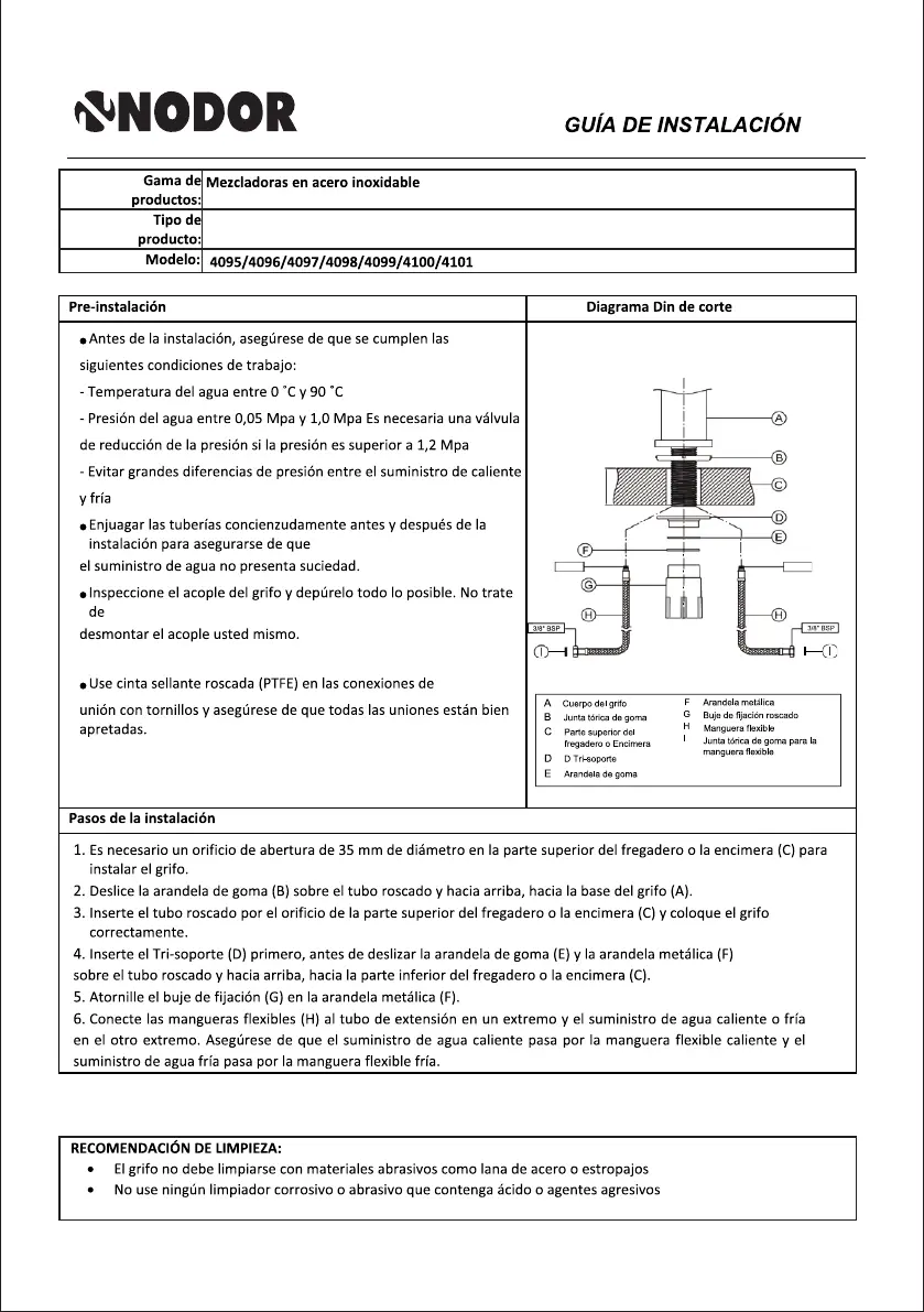 -Water pressure between 0.05MPa – 1.0MPa. Pressure reducing