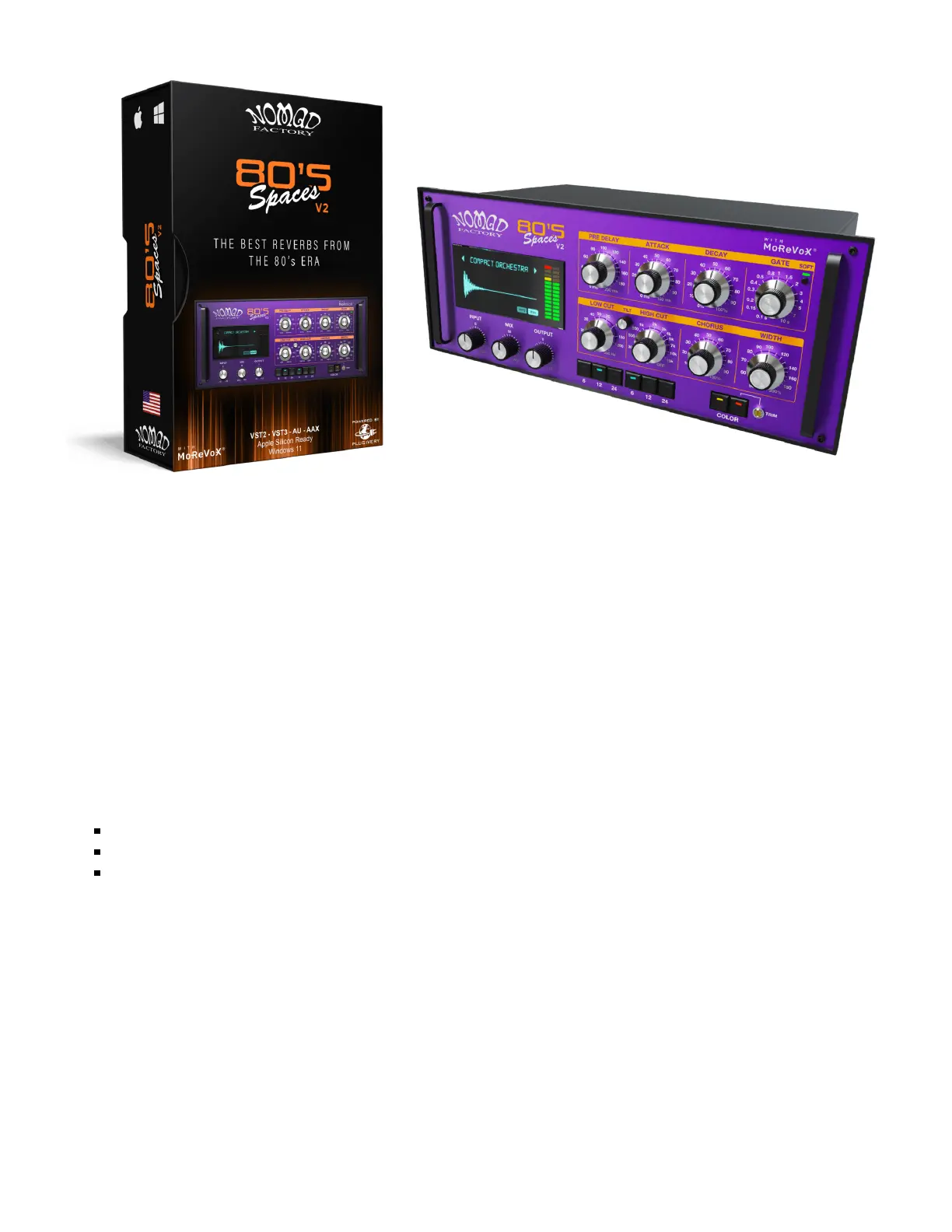 Nomad Factory, Plugivery and MoReVoX teamed up to bring you the ultimate "80's Vibe" reverb plug-in.