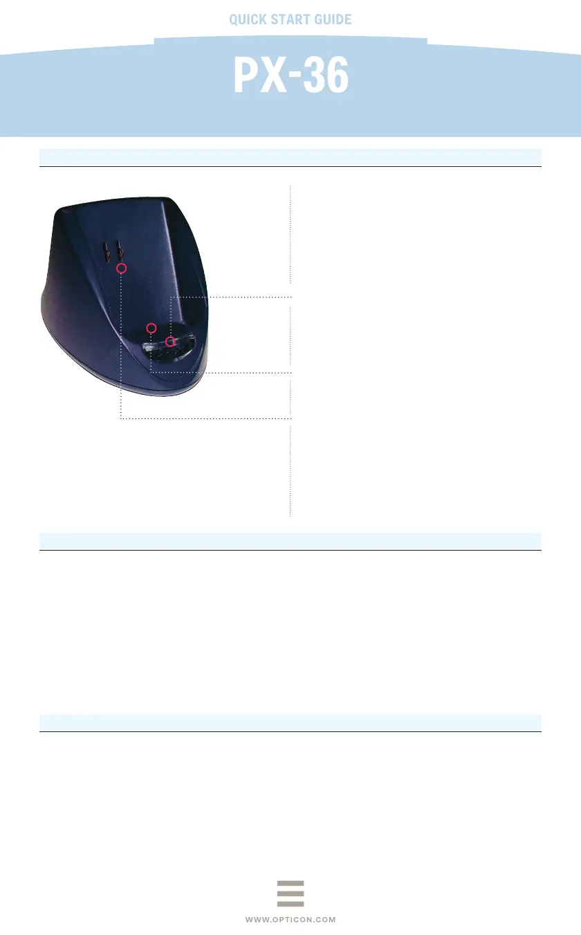 Olvassa el alább 📖 a magyar nyelvű használati útmutatót Opticon PX-36 (2 oldal) a Vonalkód olvasó kategóriában. Ezt az útmutatót 13 ember találta hasznosnak és 7 felhasználó értékelte átlagosan 4.3 csillagra