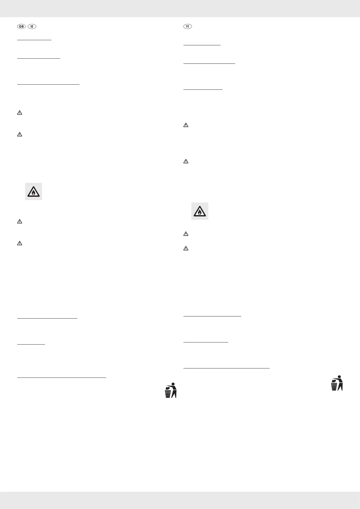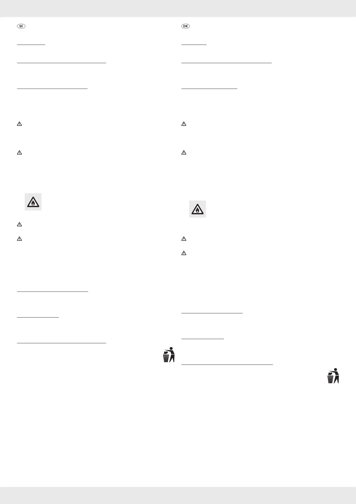 ¾ VARNING! BRANDRISK! Placera inte produkten i