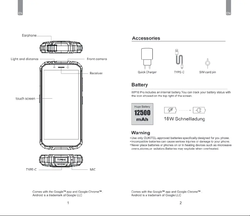 Olvassa el alább 📖 a magyar nyelvű használati útmutatót Oukitel WP18 Pro (31 oldal) a mobiltelefon kategóriában. Ezt az útmutatót 13 ember találta hasznosnak és 7 felhasználó értékelte átlagosan 4.6 csillagra