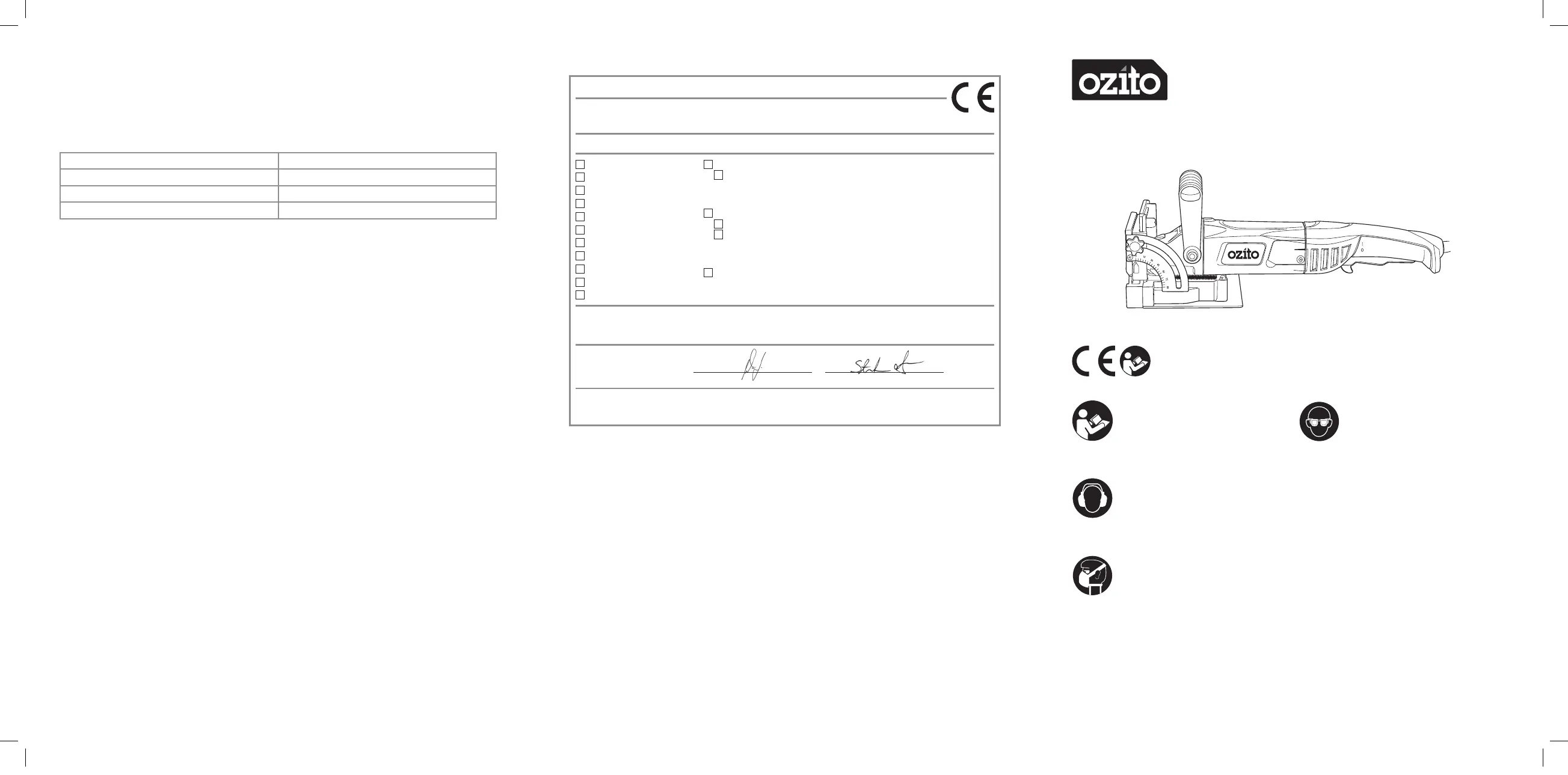 Standard references: EN 60745-1; EN 60745-2-19; EN 55014-1;
