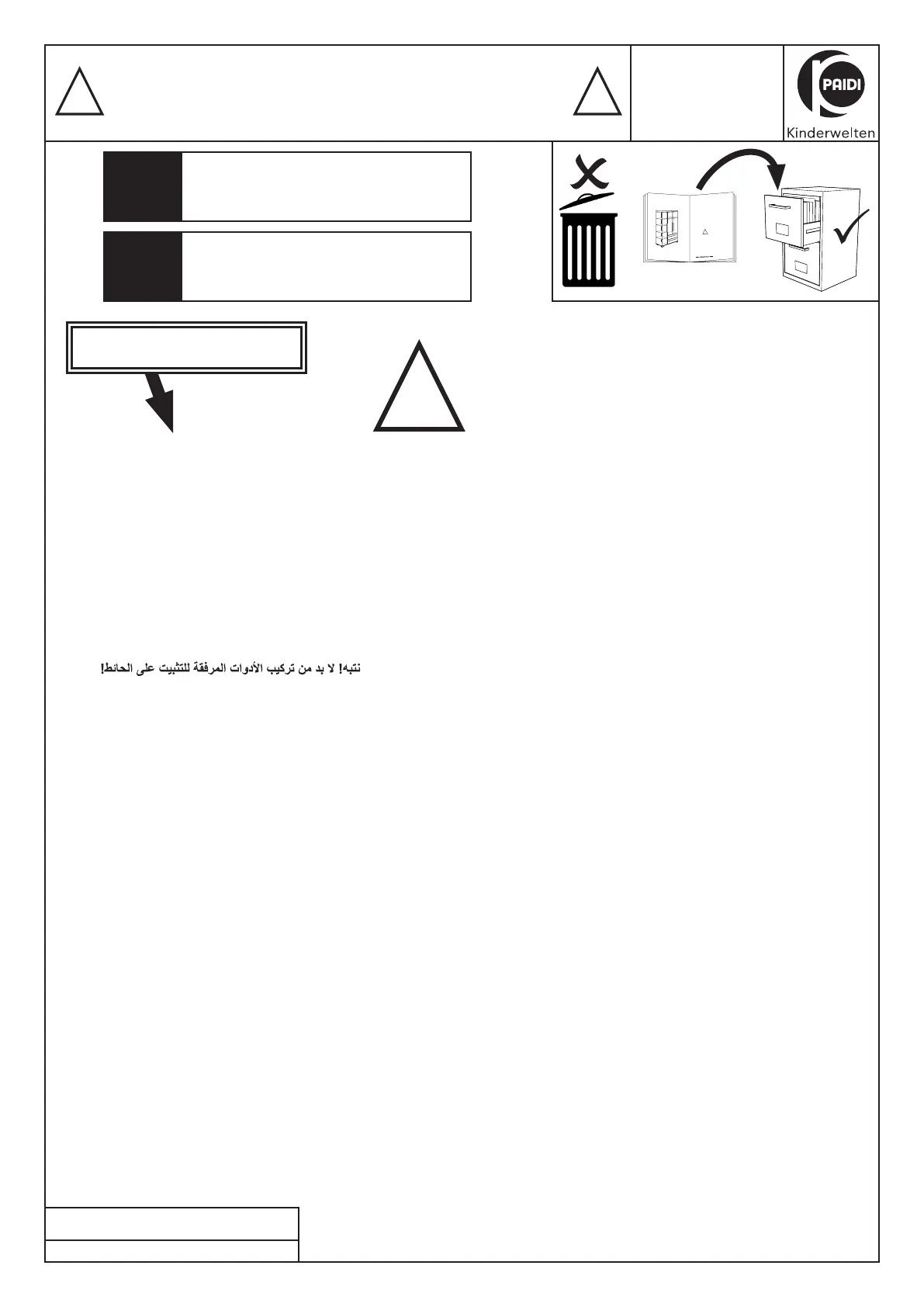 Warnhinweis ! Beiliegende Wandbefestigungen müssen montiert werden !