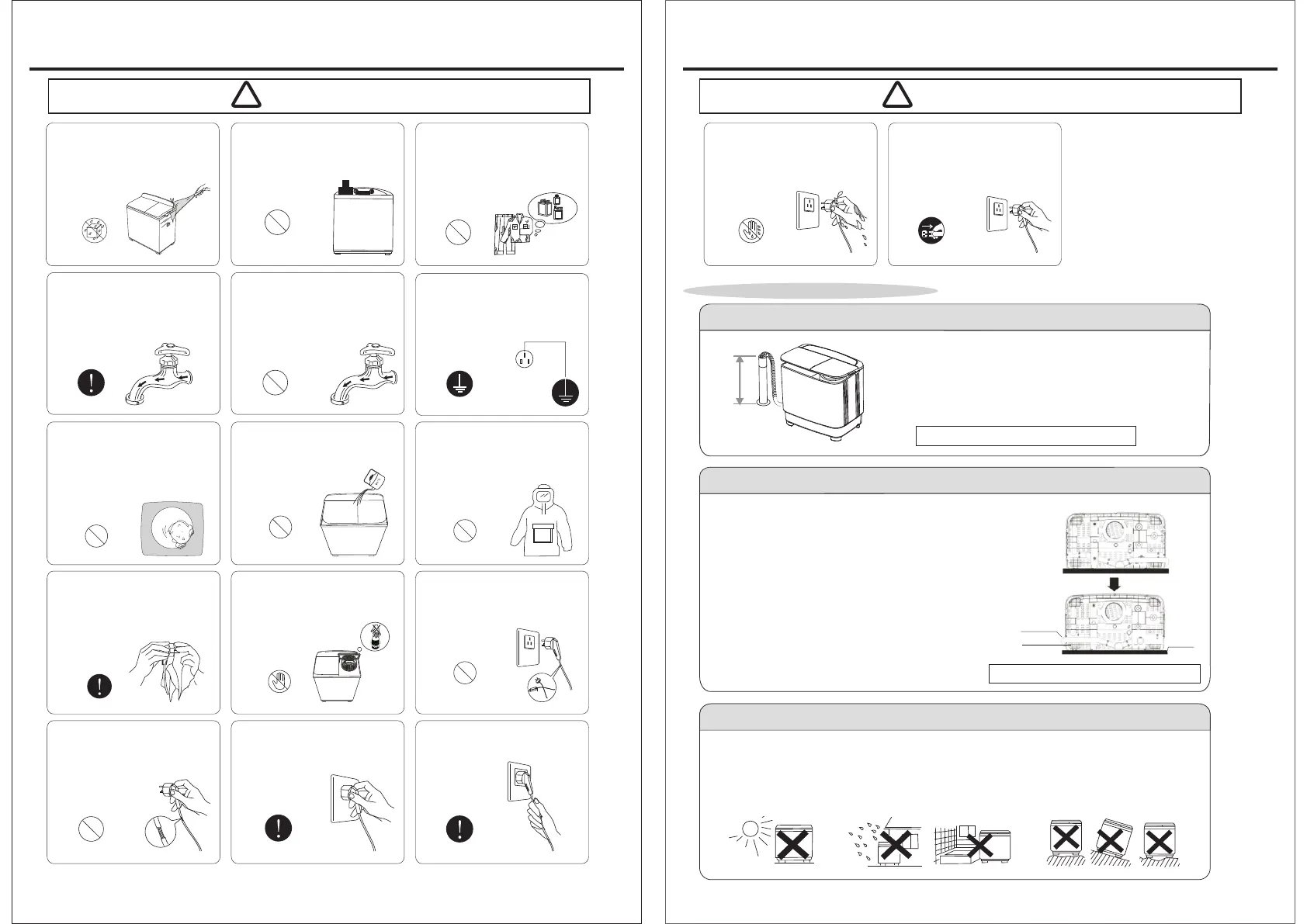 In order to avoid electrical failure, discoloration and deformation, do not install the machine