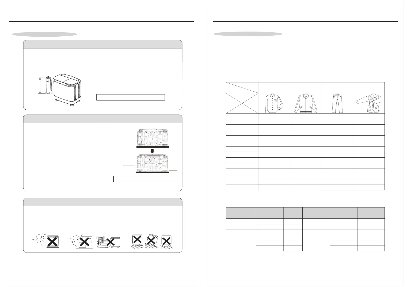●The figure above is for reference only, specific weights are subject to actual clothes.