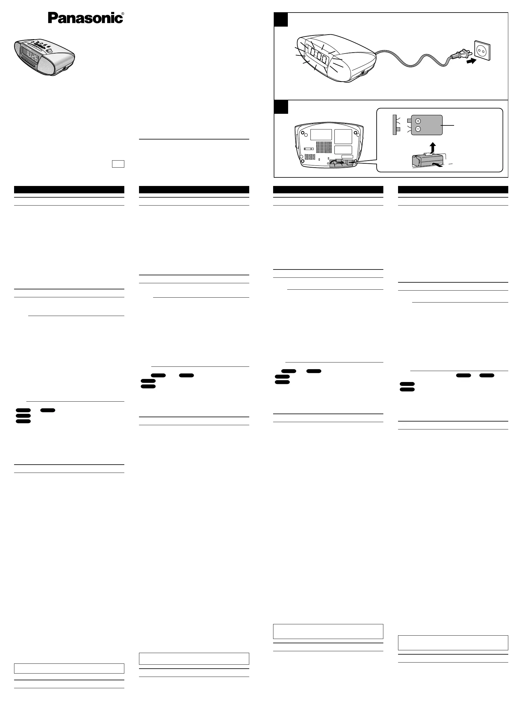 Olvassa el alább 📖 a magyar nyelvű használati útmutatót Panasonic RC-7290 (4 oldal) a Óra rádió kategóriában. Ezt az útmutatót 25 ember találta hasznosnak és 13 felhasználó értékelte átlagosan 4.6 csillagra