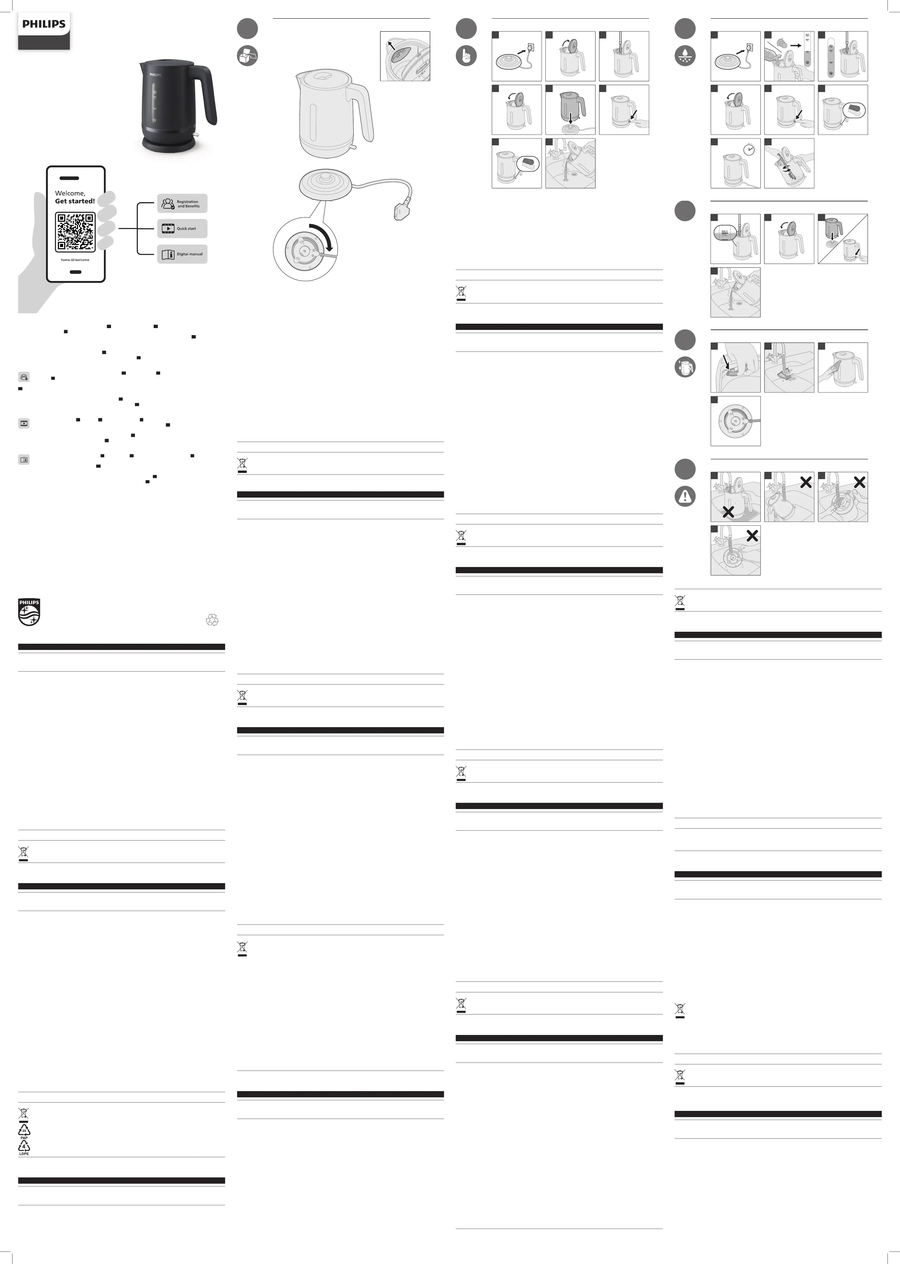 Olvassa el alább 📖 a magyar nyelvű használati útmutatót Philips HD9314 (2 oldal) a vizforraló kategóriában. Ezt az útmutatót 40 ember találta hasznosnak és 20.5 felhasználó értékelte átlagosan 4.8 csillagra