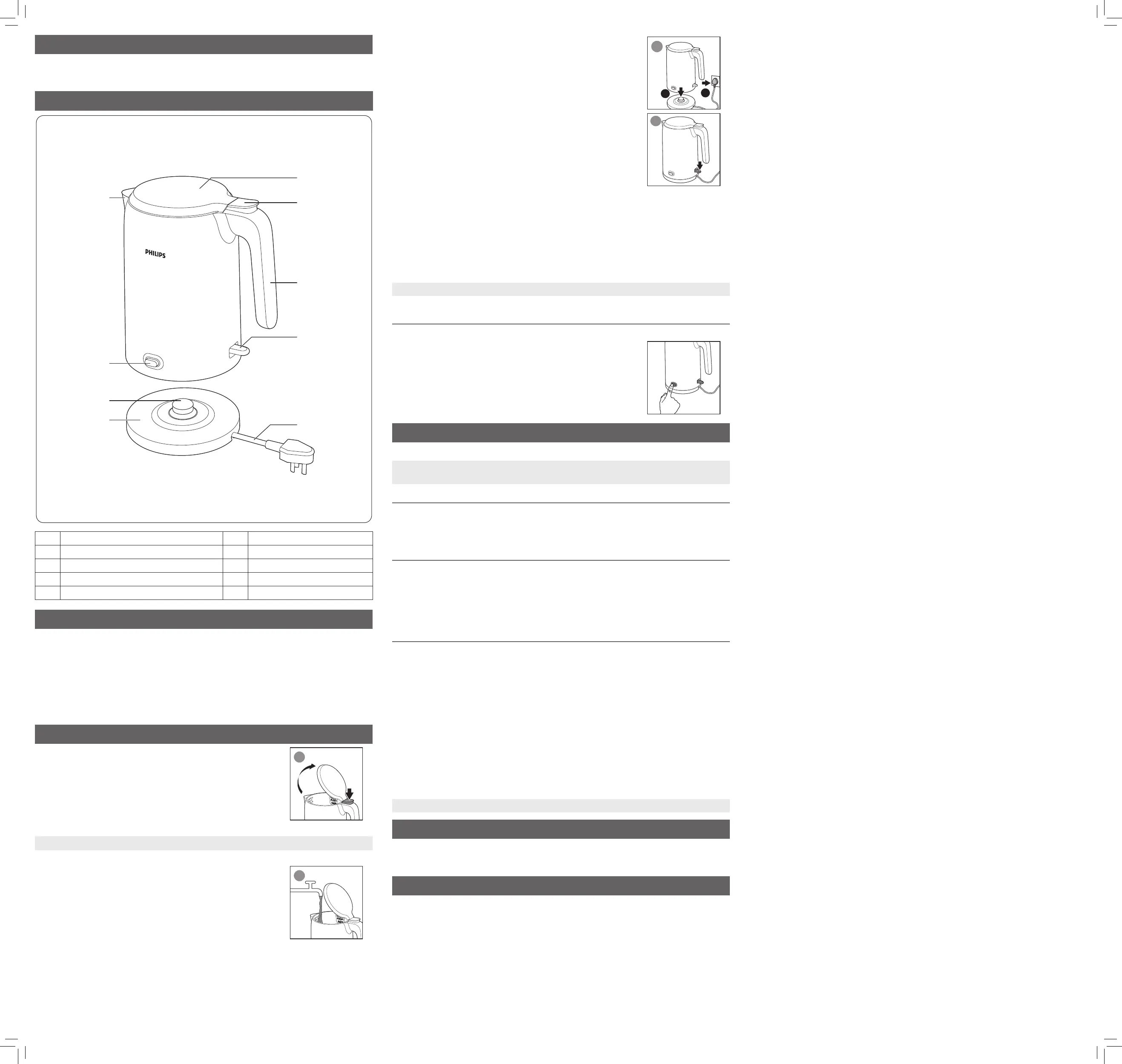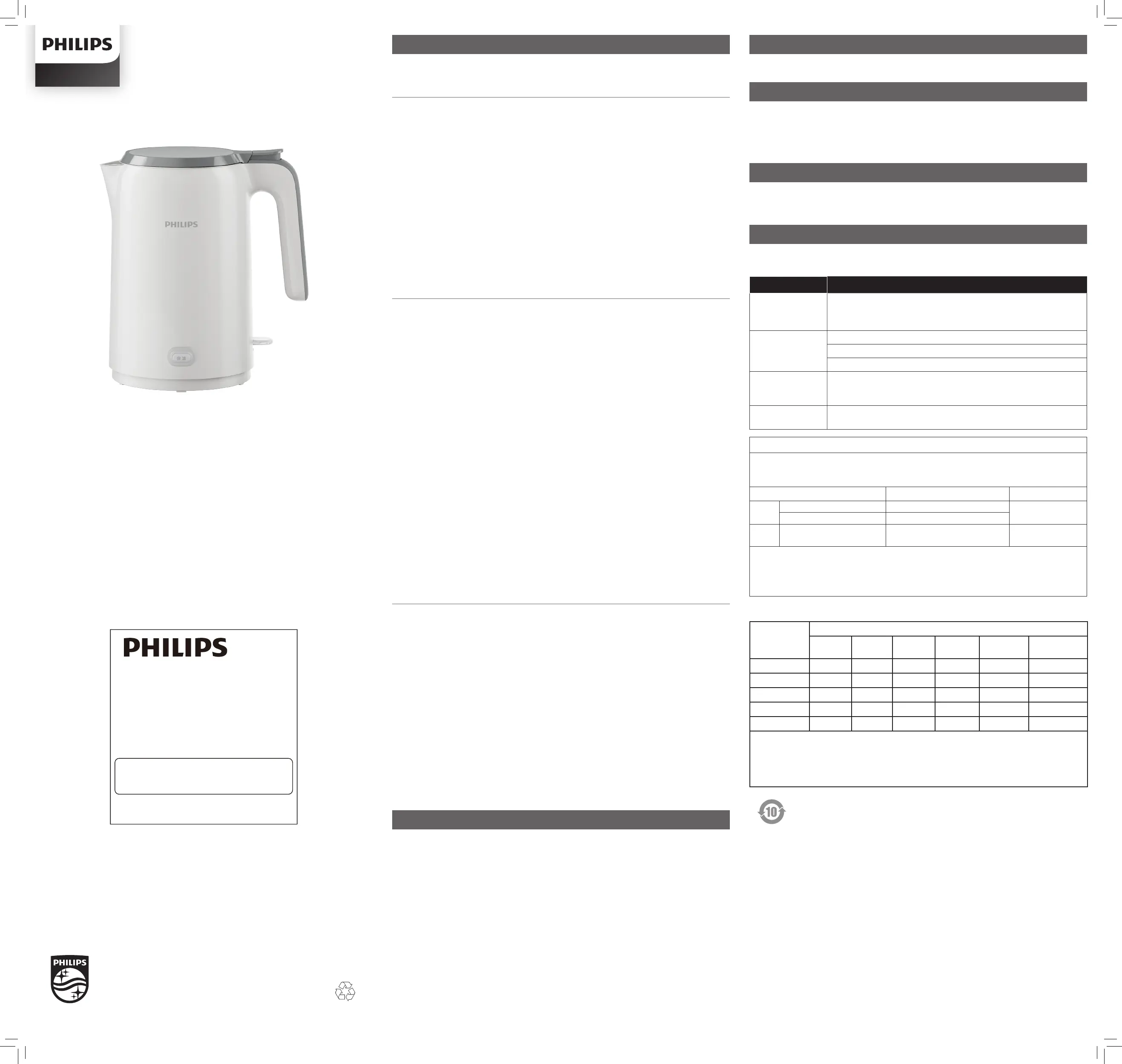 Olvassa el alább 📖 a magyar nyelvű használati útmutatót Philips HD9366 (2 oldal) a vizforraló kategóriában. Ezt az útmutatót 19 ember találta hasznosnak és 10 felhasználó értékelte átlagosan 4.9 csillagra