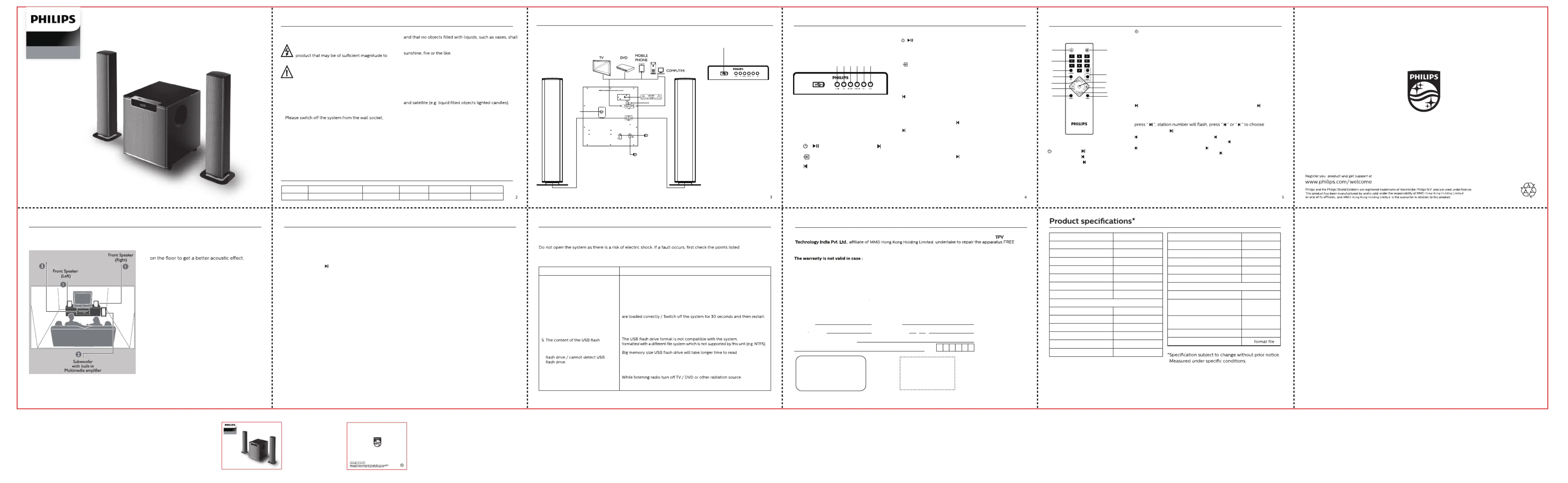 This Philips 2.1 Multimedia Speaker System is warranted against any defect due to defective materials or