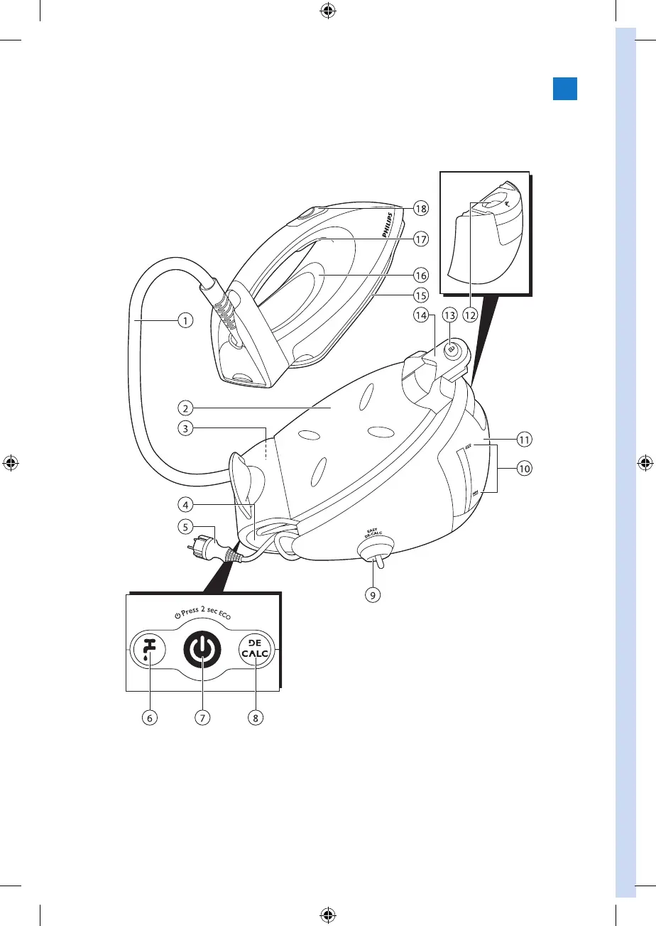 Olvassa el alább 📖 a magyar nyelvű használati útmutatót Philips PerfectCare Expert GC9222 (42 oldal) a Vas kategóriában. Ezt az útmutatót 16 ember találta hasznosnak és 8.5 felhasználó értékelte átlagosan 4.4 csillagra